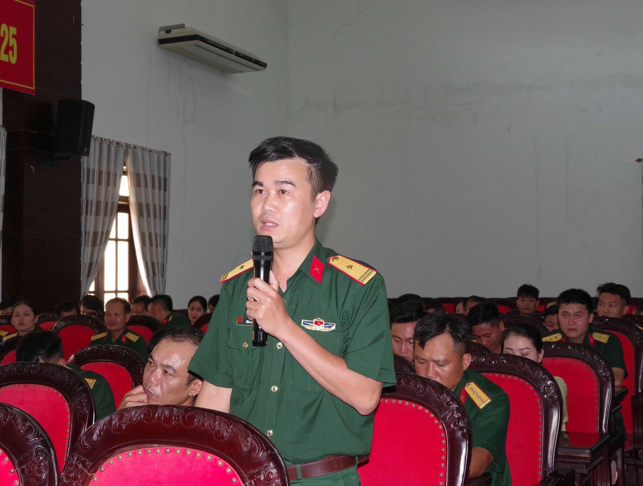 Tại buổi đối thoại trên tinh thần dân chủ, cởi mở, các cán bộ, chiến sĩ thuộc Bộ CHQS tỉnh và Ban CHQS huyện Quảng Điền cũng đã trình bày một số ý kiến và tâm tư, nguyện vọng của bản thân. Sau khi lắng nghe các ý kiến, Phó Chính ủy Quân khu và các cơ quan chuyên môn cũng đã giải đáp các ý kiến một cách thấu đáo và thoả đáng. Đồng thời, Phó Chính ủy Quân khu cũng chia sẻ sâu sắc đối với những khó khăn của một số cán bộ sĩ quan, quân nhân chuyên nghiệp, nhất là những đồng chí có hoàn cảnh khó khăn, phải công tác xa gia đình.