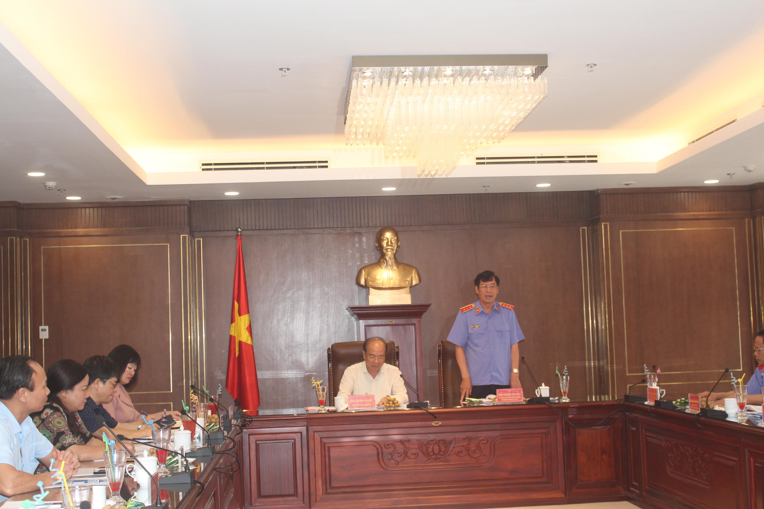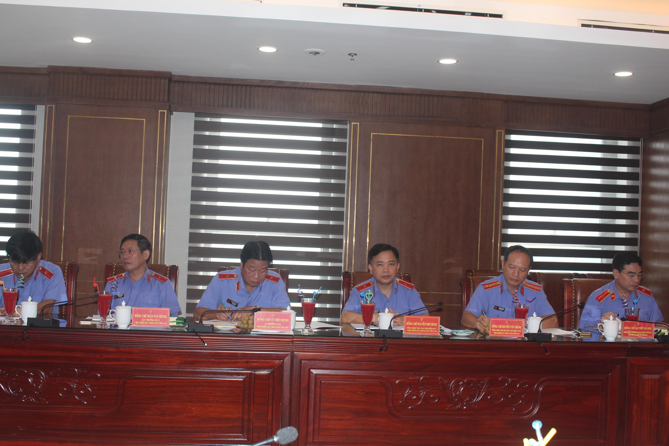 Đồng chí Trần Công Phàn, Ủy viên Ban Cán sự Đảng, Phó Viện trưởng VKSNDTC và lãnh đạo một số đơn vị thuộc VKSNDTC tham dự buổi làm việc.
