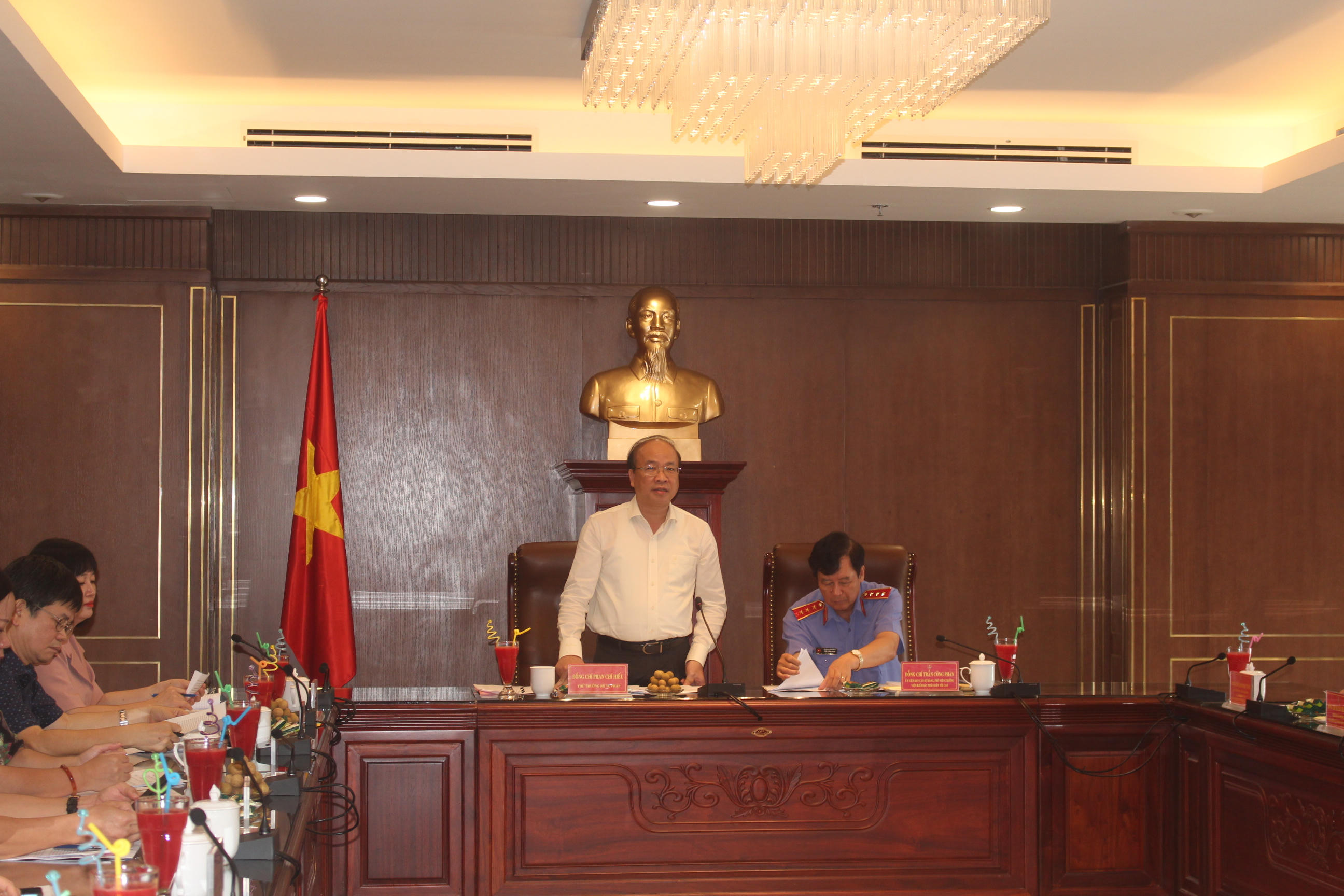(PLVN) - Sáng 24/7, Đoàn kiểm tra liên ngành việc thực hiện Chỉ thị số 32-CT/TW của Ban Bí thư về tăng cường sự lãnh đạo của Đảng trong công tác phổ biến, giáo dục pháp luật, nâng cao ý thức chấp hành pháp luật của cán bộ, nhân dân do Thứ trưởng Bộ Tư pháp Phan Chí Hiếu làm Trưởng đoàn đã làm việc với Viện kiểm sát nhân dân tối cao (VKSNDTC).