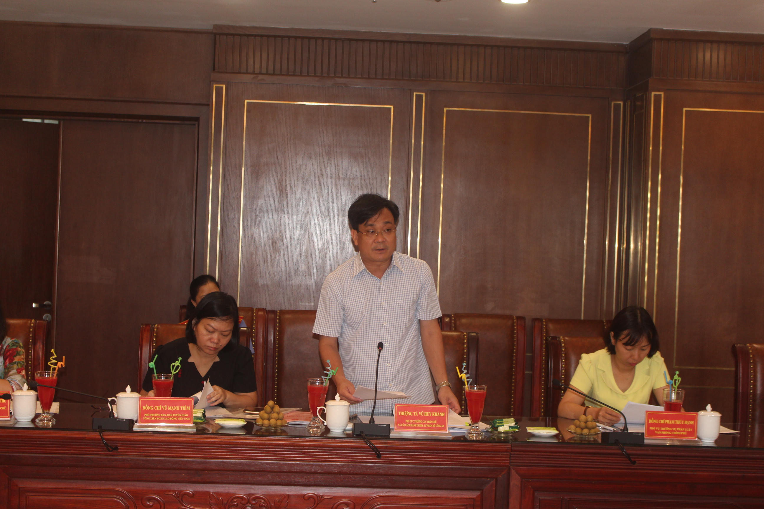 | Thượng tá Vũ Huy Khánh, Phó Cục trưởng Cục Pháp chế và cải cách hành chính, tư pháp, Bộ Công an phát biểu tại buổi làm việc |