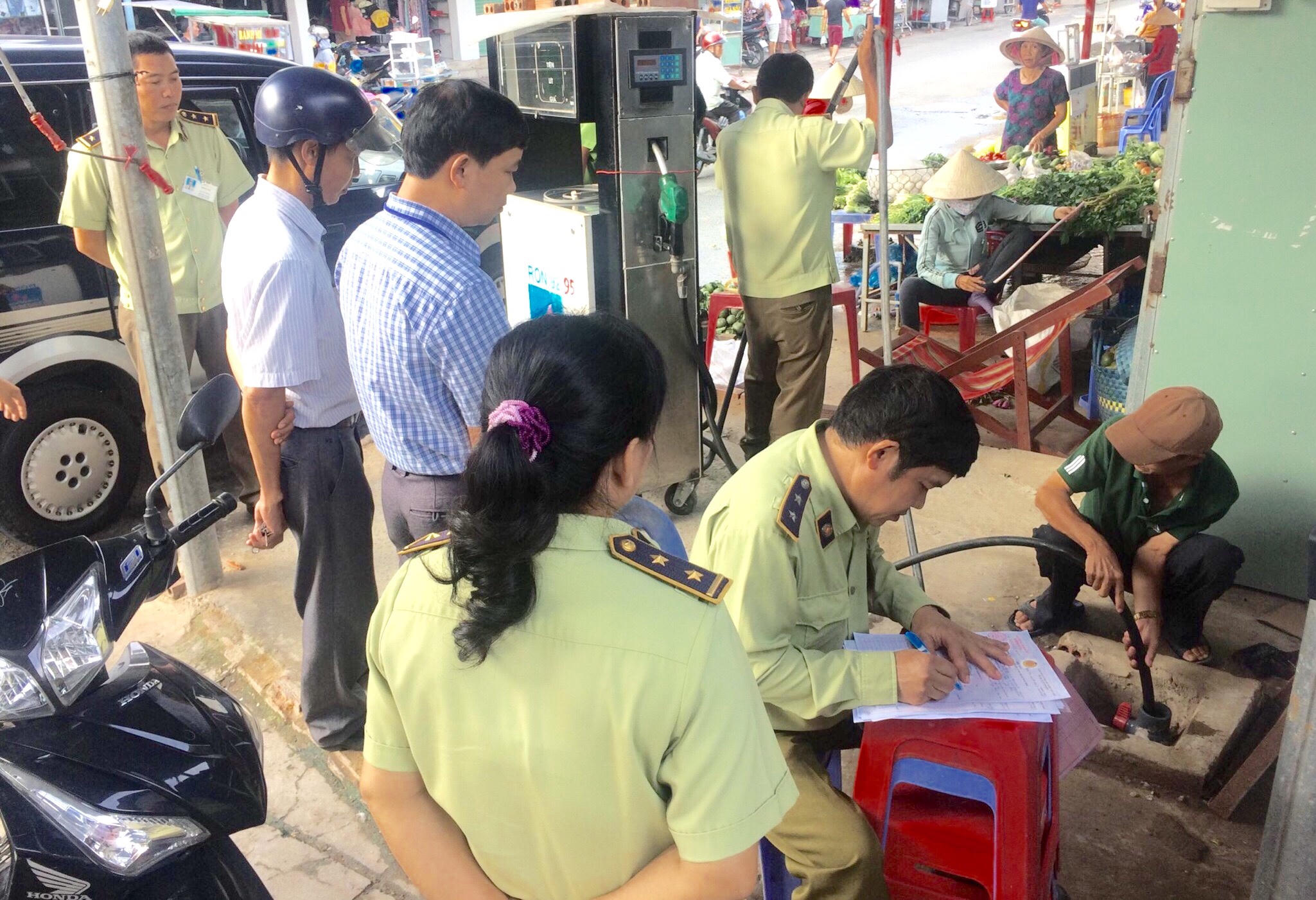 Thời điểm kiểm tra, 1 trụ bơm xăng đang hoạt động, chủ kinh doanh không xuất trình được các giấy tờ liên quan. Tại một số trụ bơm, khi thấy xuất hiện lực lượng chức năng, nhân viên bỏ trốn...