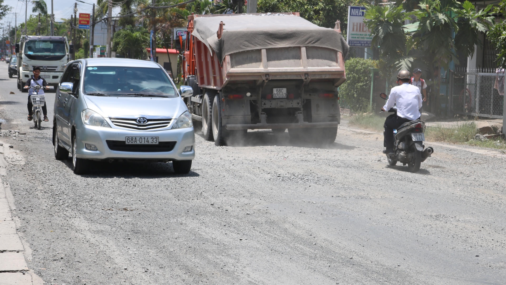 Những ngày nắng thì bụi mù mịt, còn ngày mưa, nước ngập lênh láng che khuất những ổ voi, ổ gà khiến cho người tham gia giao thông liên tục bị té ngã. Mỗi lần xe lớn đi qua, nước bẩn bắn tung tóe vào người đi đường, thậm chí tạt thẳng vào tận trong nhà dân hai bên đường.