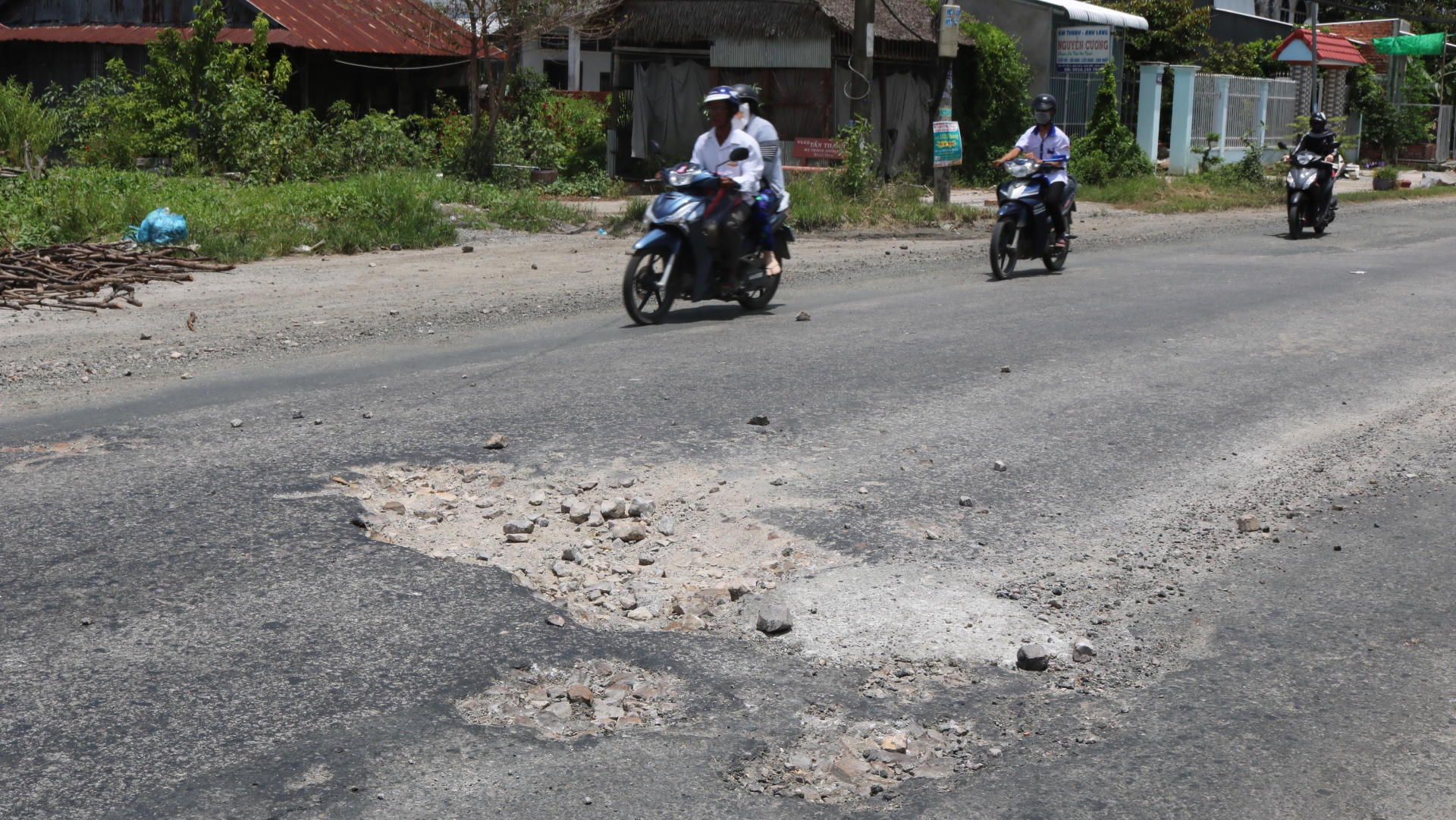 Anh Phạm Ngọc Lợi (ở thị trấn Hòn Đất, Kiên Giang) cho biết: “Hôm trước có vụ người chạy xe máy không kịp tránh ổ gà nên sụp té xuống, xe bị gãy chảng ba, may mà người chỉ bị sây xước nhẹ, thấy vậy tôi đem thùng xốp ra để cảnh báo cho bà con biết mà tránh”.
