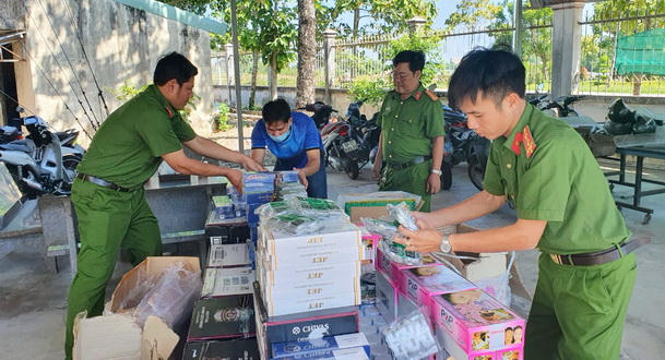 Tại hiện trường, Công an TP Hà Tiên đã tạm giữ 1 vỏ máy công suất lớn, 7.768 lọ mỹ phẩm các loại, 2.000 bao thuốc lá ngoại và 360 chai rượu ngoại hiệu Chivas regal 12. Ước tính tổng số giá trị tài sản khoảng 400 triệu đồng.