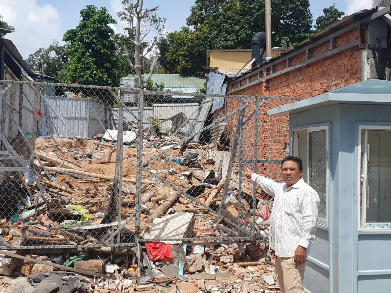Ông Lê Văn Cảnh đứng trước căn nhà và mảnh đất đã bị lực lượng chức năng TP Phú Quốc cưỡng chế tháo dỡ vào ngày 14/8 |