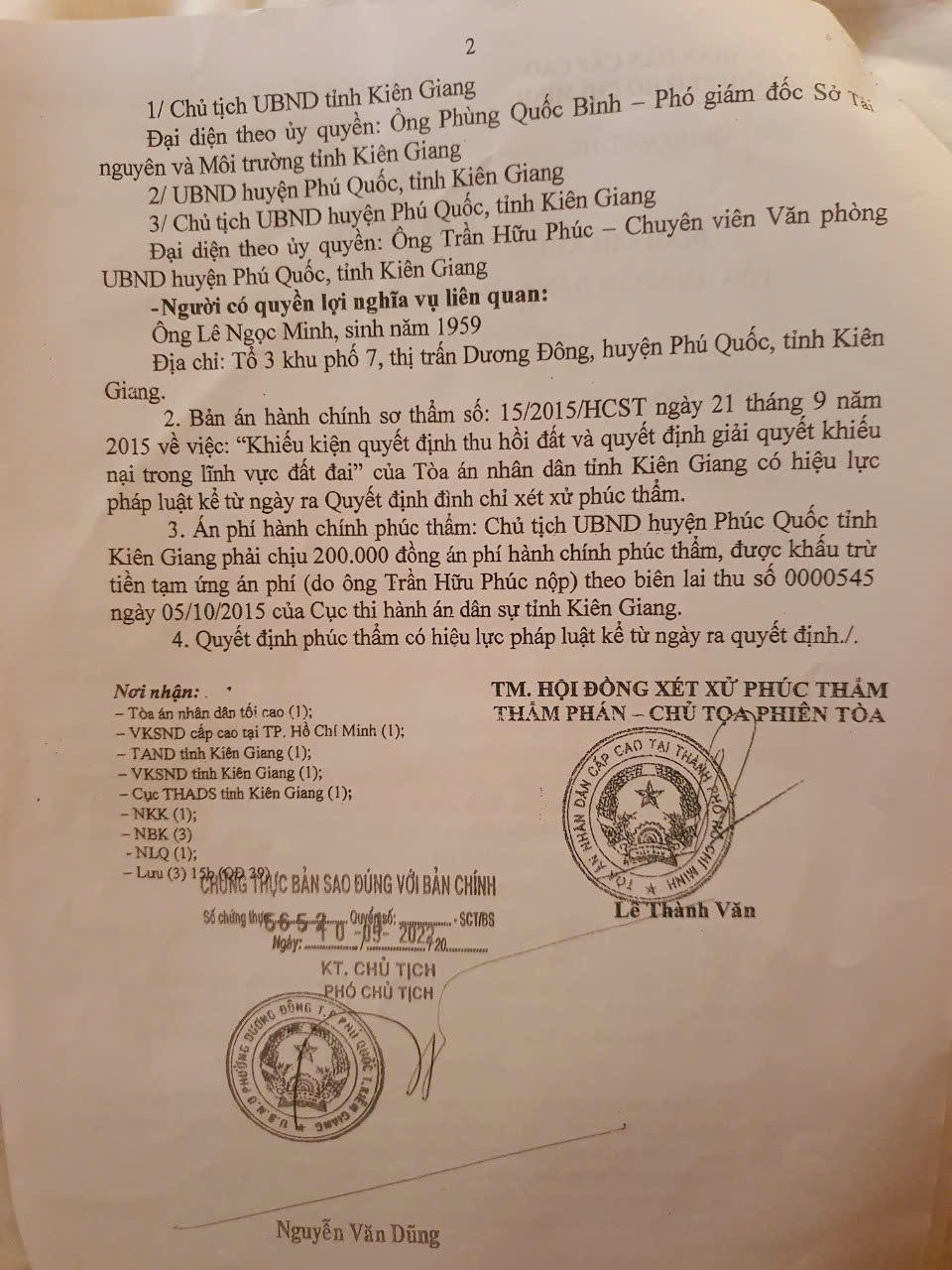 Cụ thể là tại các bản án ngày 21/9/2015 của TAND tỉnh Kiên Giang và ngày 6/11/2015 của TAND huyện Phú Quốc.
