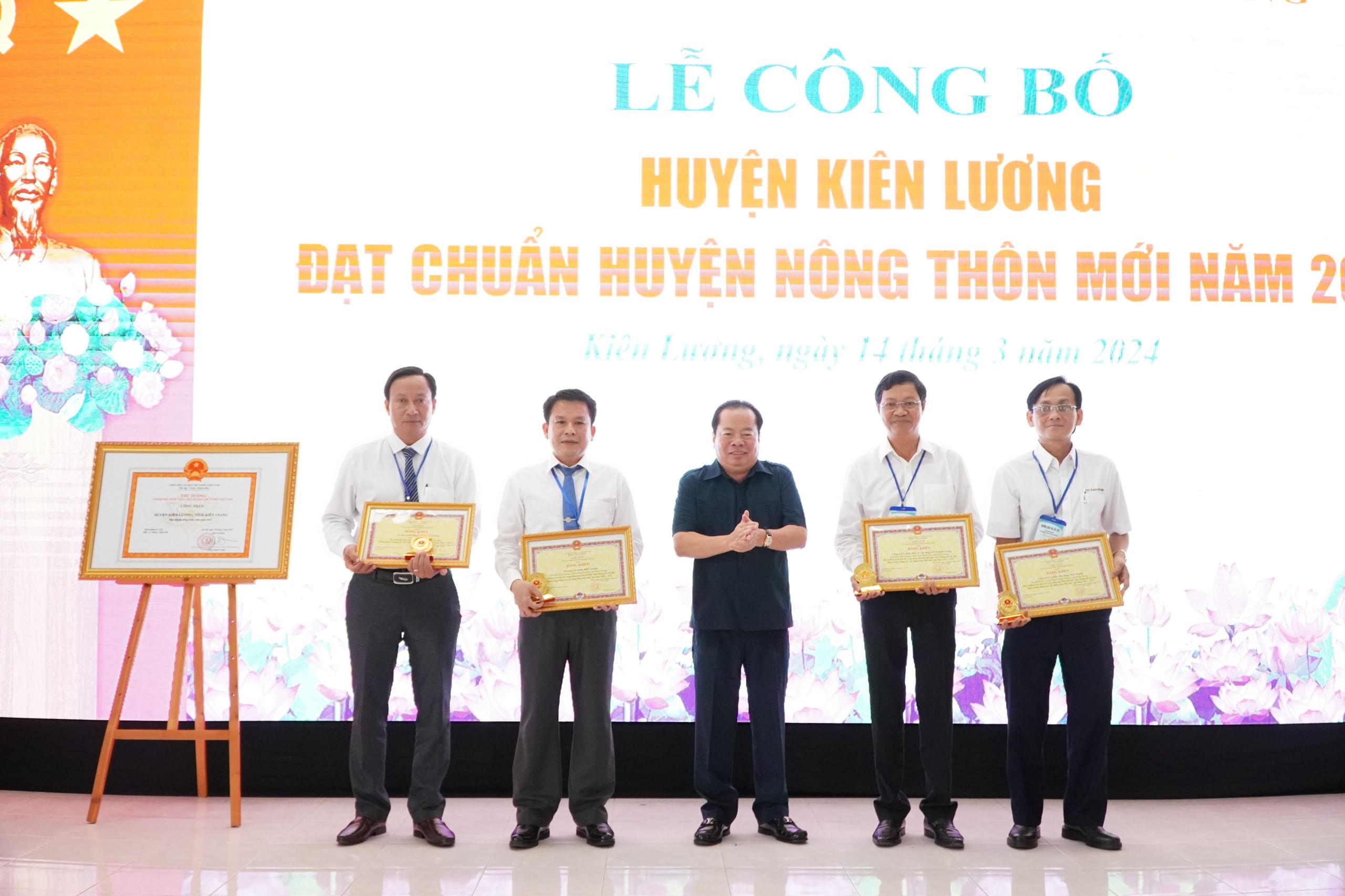 Dịp này, UBND tỉnh Kiên Giang trao tặng 23 Bằng khen cho các tập thể và cá nhân có thành tích xuất sắc trong phong trào xây dựng nông thôn mới huyện Kiên Lương.