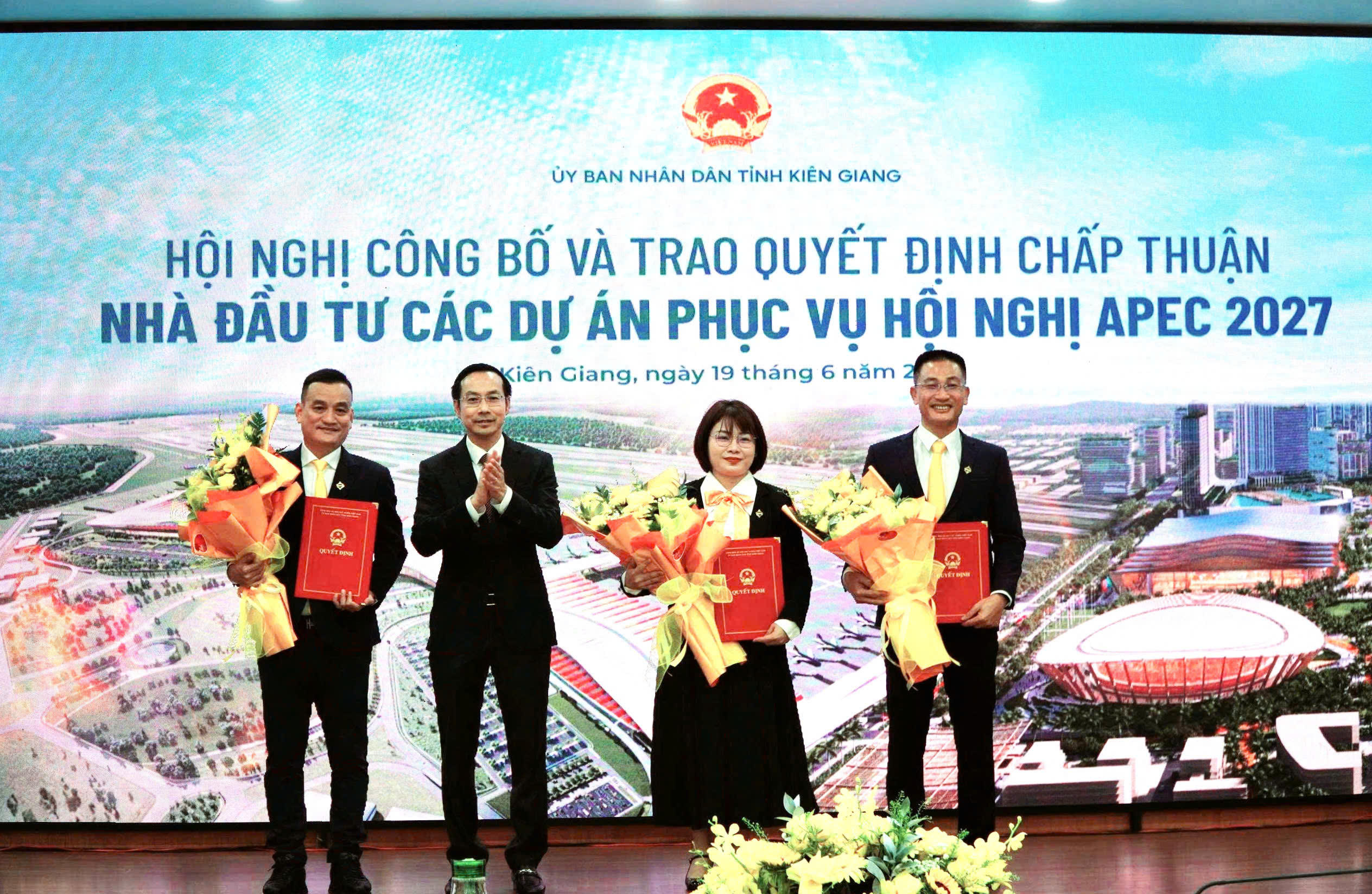 (PLVN) - Ngày 19/6, UBND tỉnh Kiên Giang tổ chức lễ công bố và trao quyết định phê duyệt kết quả lựa chọn nhà đầu tư đối với các dự án phục vụ hội nghị APEC 2027.