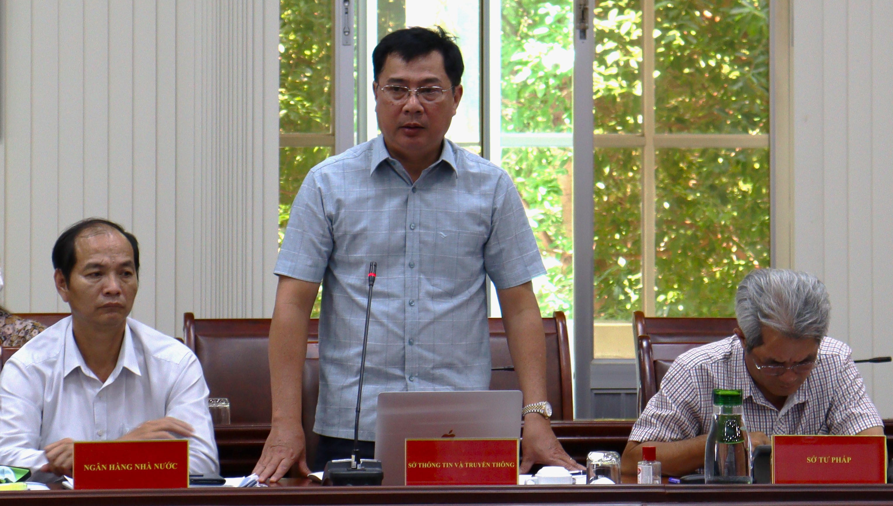 Ông Võ Minh Trung - Giám đốc Sở Thông tin và Truyền thông tỉnh Kiên Giang phát biểu về tình hình tiếp nhận hồ sơ trên Cổng dịch vụ công |