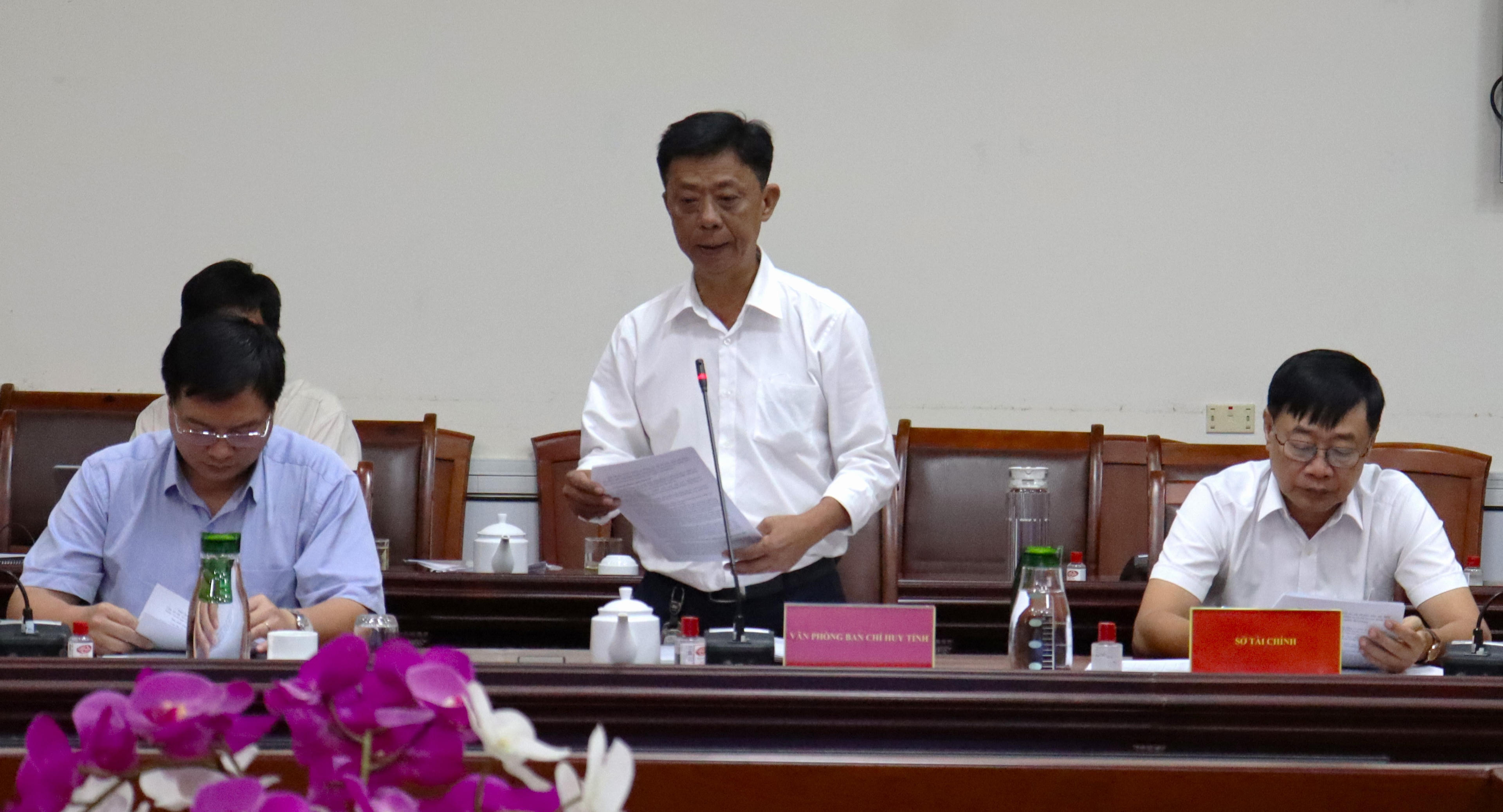 Ông Nguyễn Huỳnh Trung - Chi cục Trưởng Chi cục Thủy lợi, Chánh Văn phòng Ban chỉ huy Phòng, chống thiên tai, tìm kiếm cứu nạn và phòng thủ dân sự tỉnh báo cáo tình hình thiên tai thời gian vừa qua |