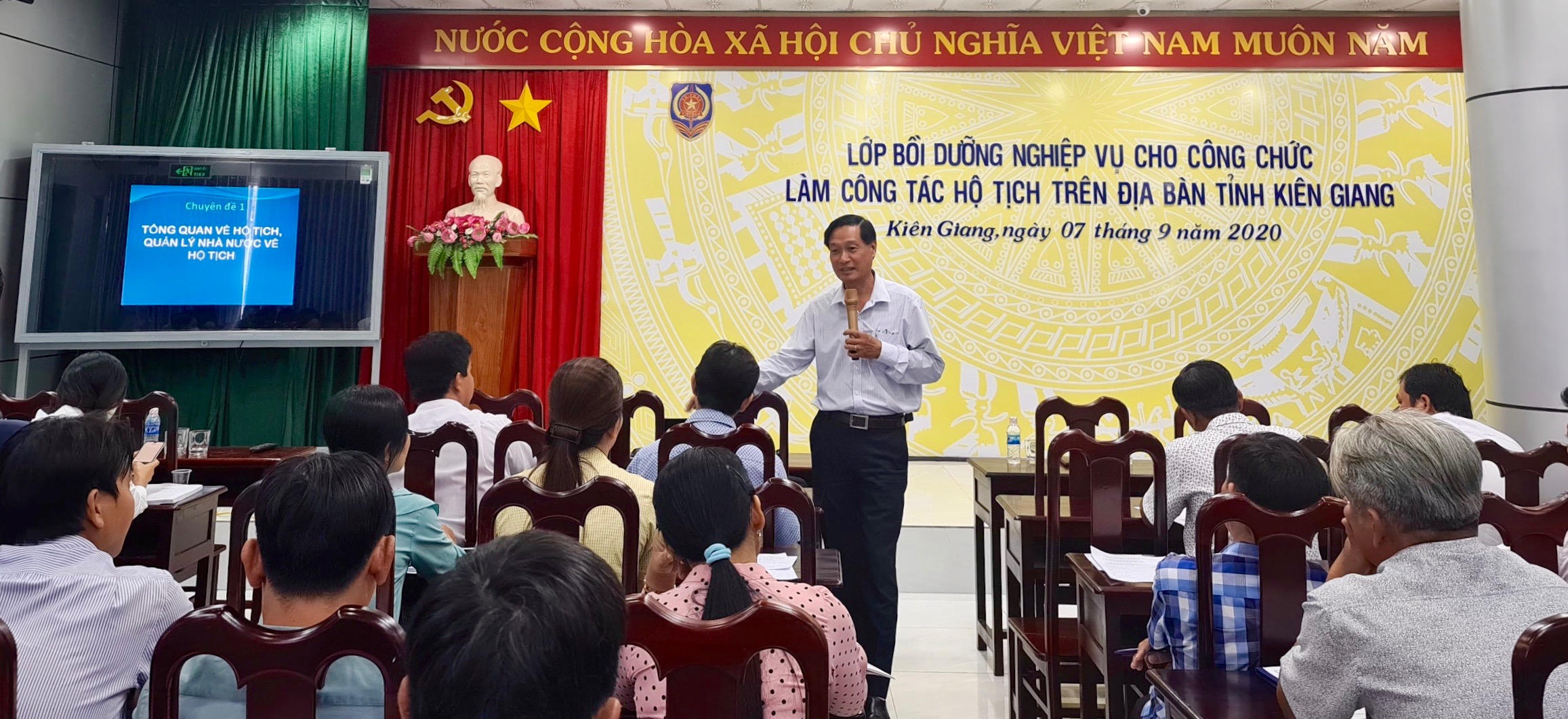 Phát biểu tại lễ khai giảng, ông Lâm Minh Công, Giám đốc Sở Tư pháp Kiên Giang cho biết: Đăng ký và quản lý hộ tịch là một trong những hoạt động tư pháp nhằm đảm bảo thực hiện các quyền nhân thân của cá nhân và là biện pháp quản lý dân cư hữu hiệu. Trong thời gian qua, công tác đăng ký, quản lý hộ tịch của địa phương luôn được các cấp chính quyền quan tâm, củng cố, kiện toàn. Tuy nhiên, trong giai đoạn hiện nay, công tác hộ tịch có nhiều đổi mới, yêu cầu ngày càng cao nhưng văn bản quy phạm pháp luật về hộ tịch mới ban hành, thực tiễn áp dụng còn nhiều vướng mắc, chưa thống nhất. Vì vậy, việc bồi dưỡng, cung cấp thông tin, cập nhật kiến thức và trao đổi phương pháp, kỹ năng cho công chức làm công tác hộ tịch có ý nghĩa vô cùng thiết thực.
