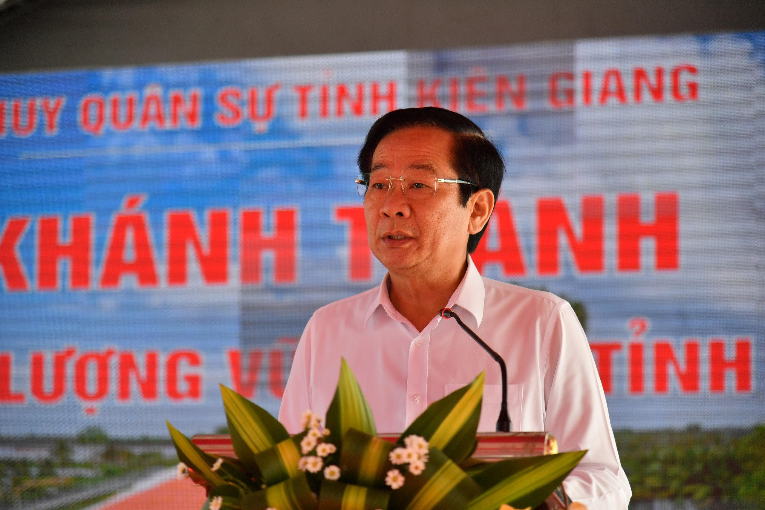 Phát biểu tại buổi lễ, Nguyên Thủ tướng Chính phủ Nguyễn Tấn Dũng nhắc lại truyền thống cách mạng hào hùng của quê hương Kiên Giang trong hai cuộc kháng chiến, cứu nước. Ông ghi nhận đánh giá cao những kết quả phát triển kinh tế - xã hội, quốc phòng, an ninh của Đảng bộ, chính quyền, quân, dân Kiên Giang trong thời gian qua. Đồng thời, mong rằng Đảng bộ, chính quyền, lực lượng vũ trang tỉnh tiếp tục làm tốt hơn nữa sự nghiệp xây dựng, bảo vệ Tổ quốc trên địa bàn tỉnh; tiếp tục chăm lo tốt hơn nữa đời sống của người dân, không thỏa mãn, dừng lại với những kết quả đạt được, để xứng đáng hơn nữa với sự hy sinh của các thệ hệ cha anh, với lòng tin yêu của nhân dân…