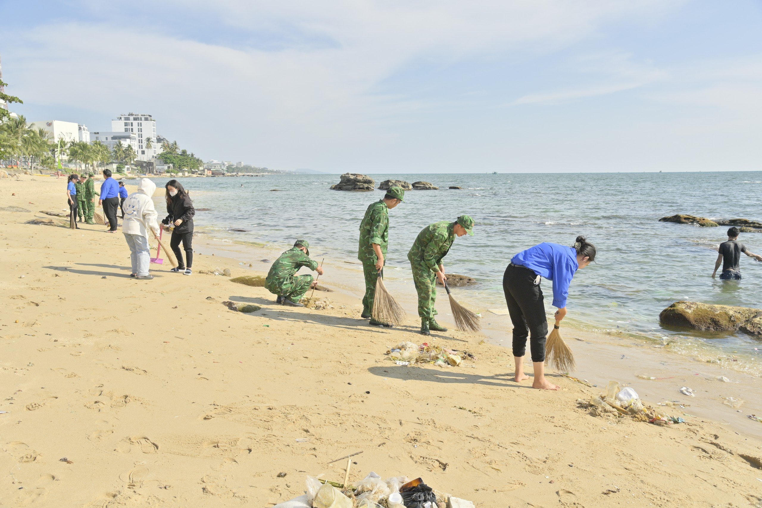 Liên chi đoàn trường THPT Dương Đông, phường Dương Đông, trạm kiểm soát Biên phòng cửa khẩu cảng Dương Đông thu gom rác thải trên bãi biển TP. Phú Quốc. |