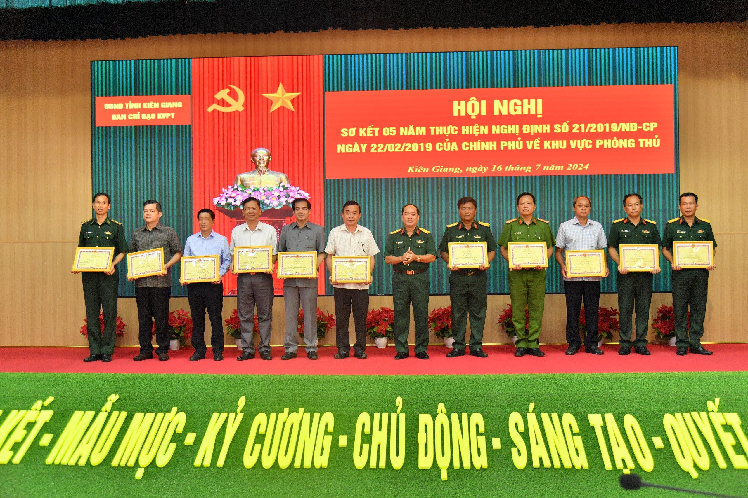 (PLVN) - Ngày 16/7, Ban Chỉ đạo khu vực phòng thủ (KVPT) tỉnh Kiên Giang tổ chức Hội nghị sơ kết 5 năm thực hiện Nghị định số 21/2019/NĐ-CP ngày 22/02/2019 của Chính phủ về KVPT.