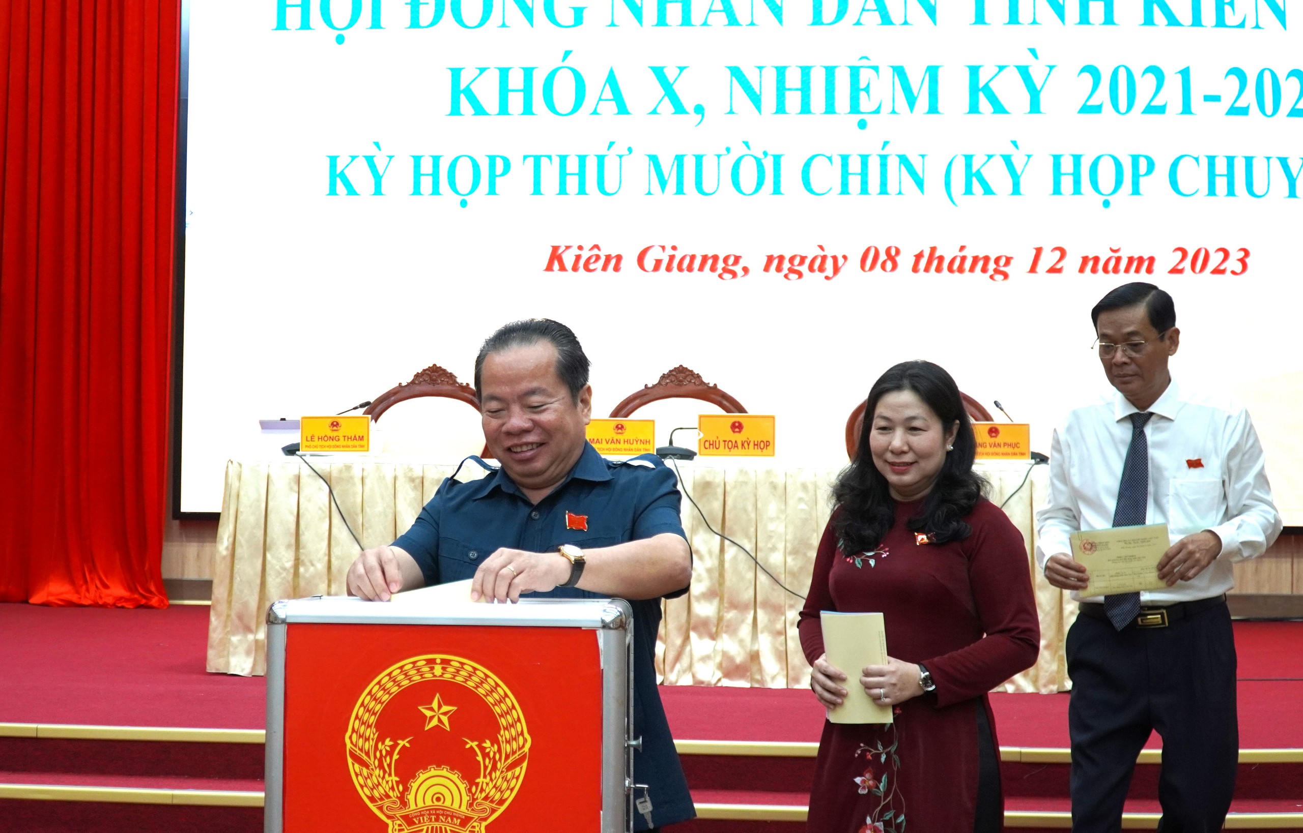 Tại kỳ họp này, HĐND tỉnh Kiên Giang đã thực hiện lấy phiếu tín nhiệm đối với 30 người giữ chức vụ do HĐND tỉnh bầu hoặc phê chuẩn.