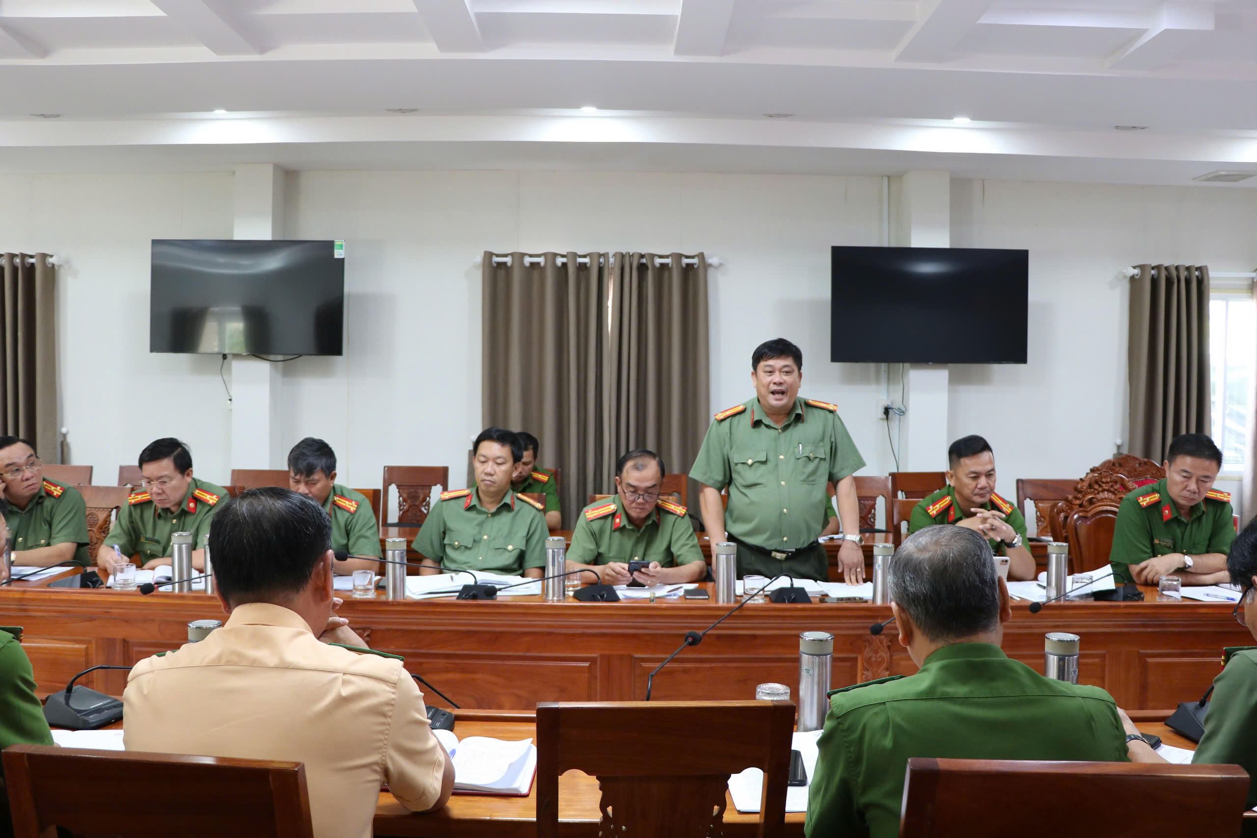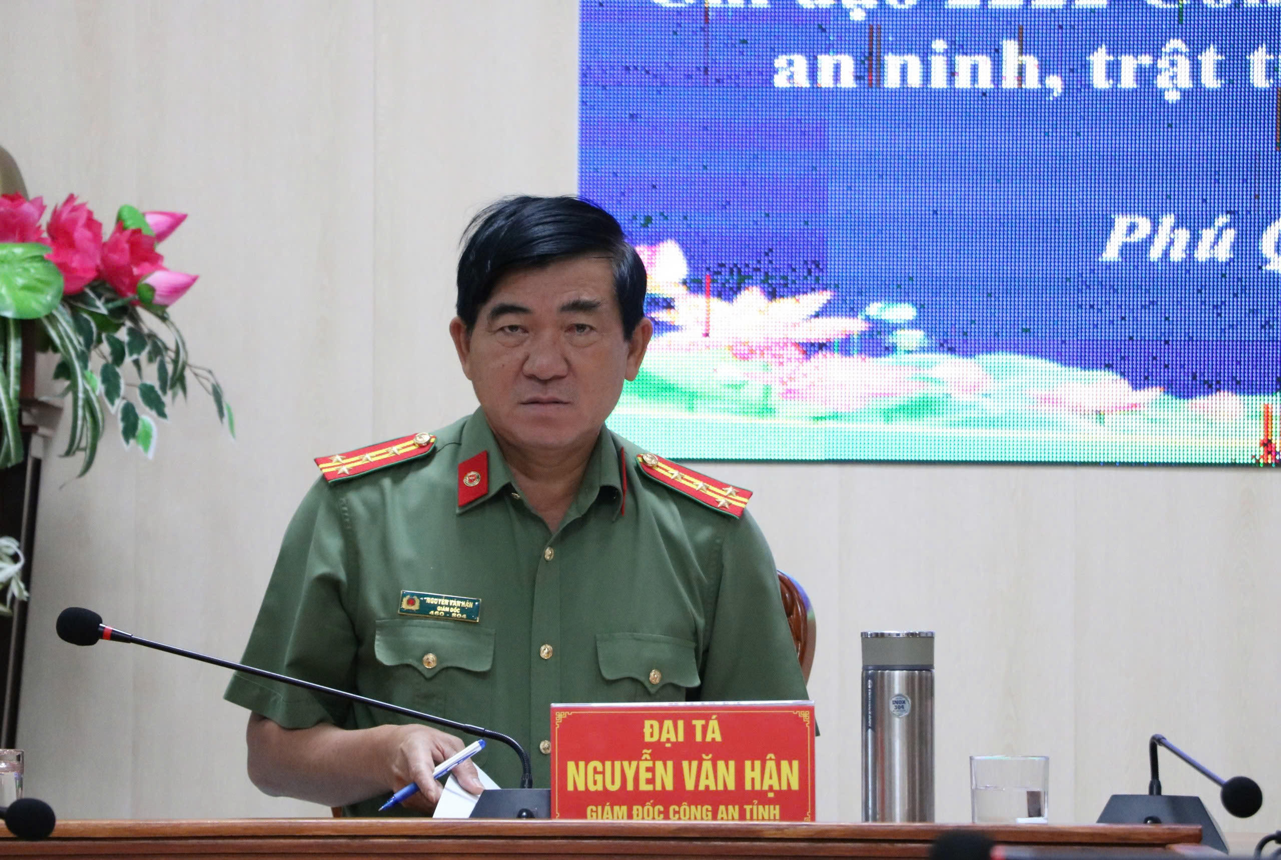 Đại tá Nguyễn Văn Hận – Giám đốc Công an tỉnh Kiên Giang dự và chủ trì hội nghị |
