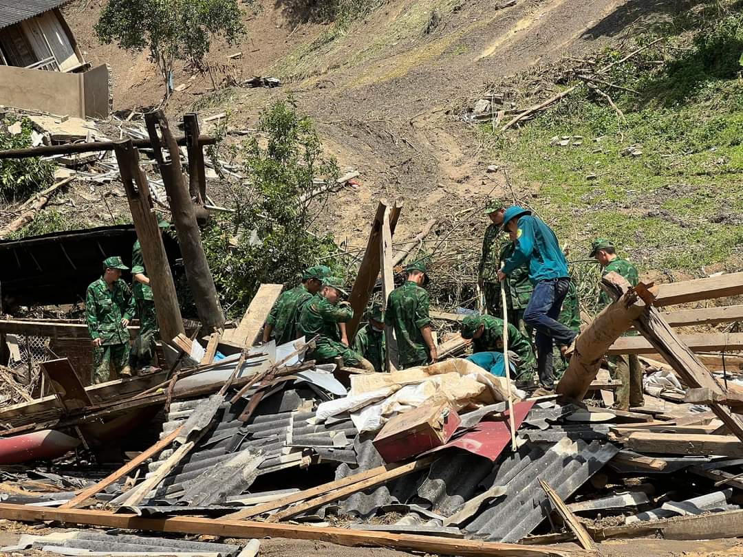 Các lực lượng chức năng đang tích cực hỗ trợ người dân khắc phục thiệt hại do mưa lũ. |