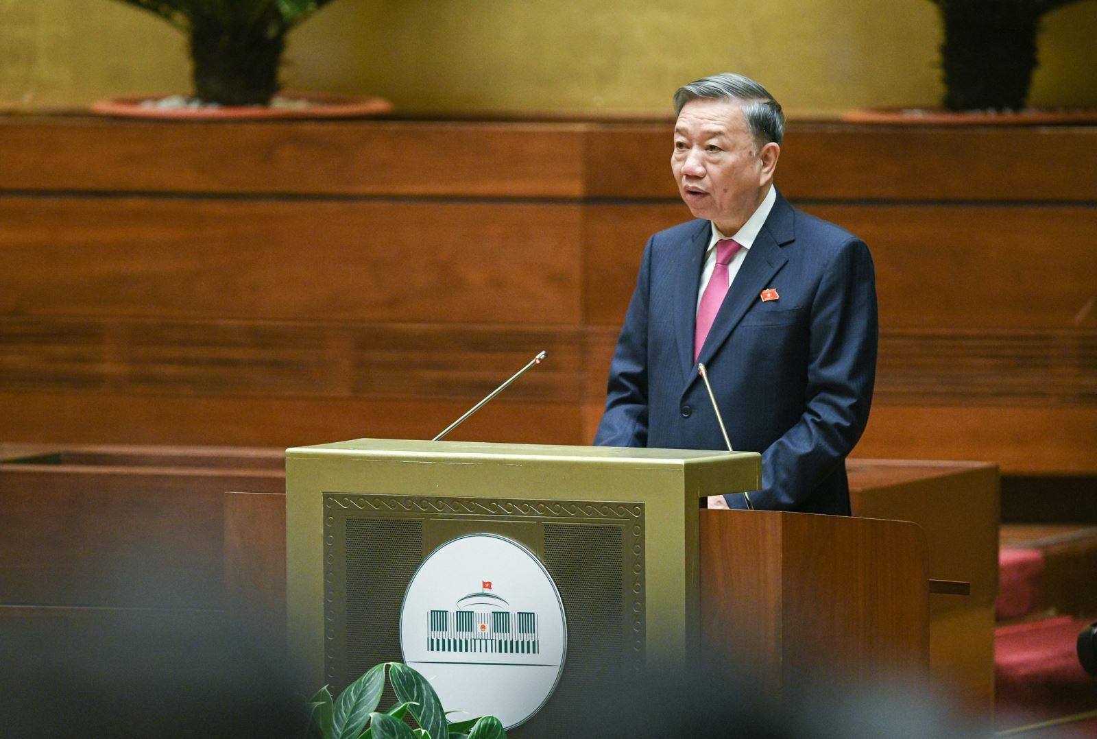 Bộ trưởng Bộ Công an Tô Lâm trình bày Tờ trình về việc thực hiện Luật Xuất cảnh, nhập cảnh của công dân Việt Nam.