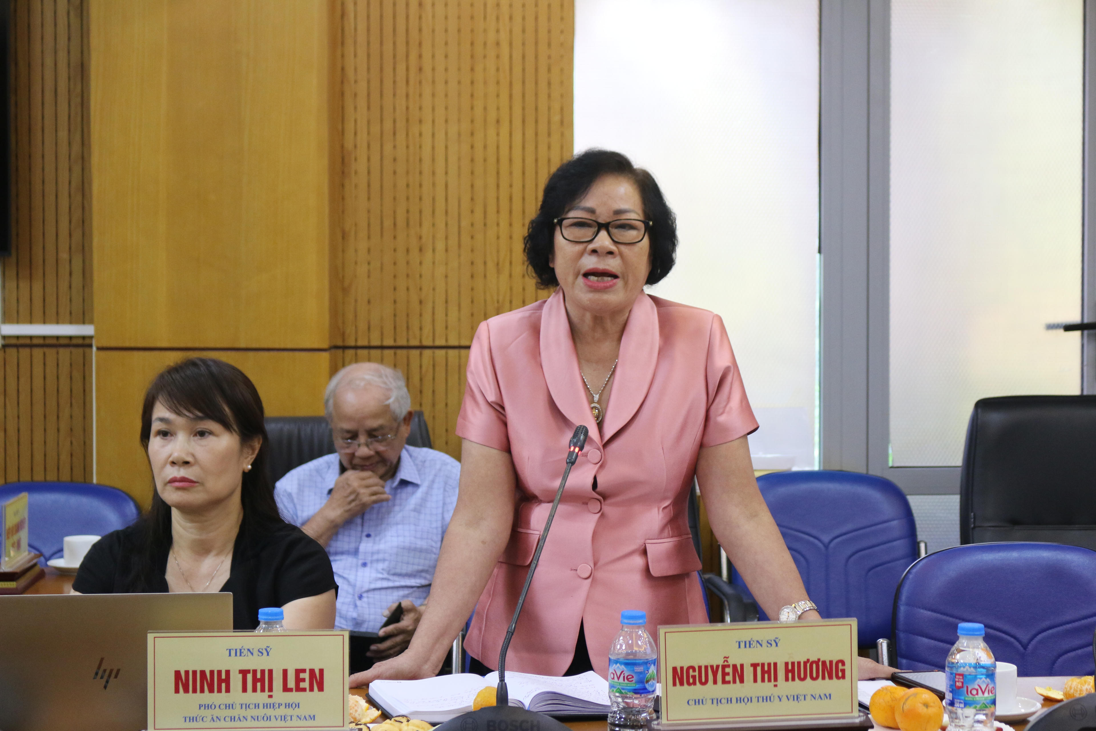 TS. Nguyễn Thị Hương, Chủ tịch Hội thú y Việt Nam đóng góp ý kiến tại toạ đàm. |