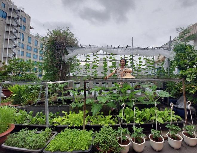 Vì sân thượng ở trên cao nên việc trồng trọt có nhiều khó khăn hơn so với dưới mặt đất. Để tối ưu không gian và giảm tải trọng xuống trần nhà, anh hạn chế các loại cây trồng cần nhiều đất, đồng thời xử lý chống thấm cẩn thận trước khi làm vườn.