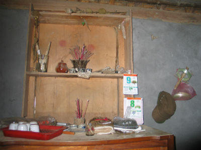 Để hiểu rõ hơn về phong tục, chúng tôi được chị Hiền, một người sinh ra và lớn lên tại mảnh đất này dẫn về nhà ông Đặng Văn Túc (72 tuổi) để hỏi chuyện. Nghe kể, ông Túc là một người có tài xua đuổi ma quỷ, được dân làng vô cùng trọng vọng và kính nể ở thôn Khe Pháo. Đến đây, hơn một lần chúng tôi được ông kể nghe về những câu chuyện lạ kỳ liên quan tới ma chay, cúng bái của dân tộc Dao và còn cơ hội được ngắm nhìn bộ đồ “hành nghề” của thầy cúng.