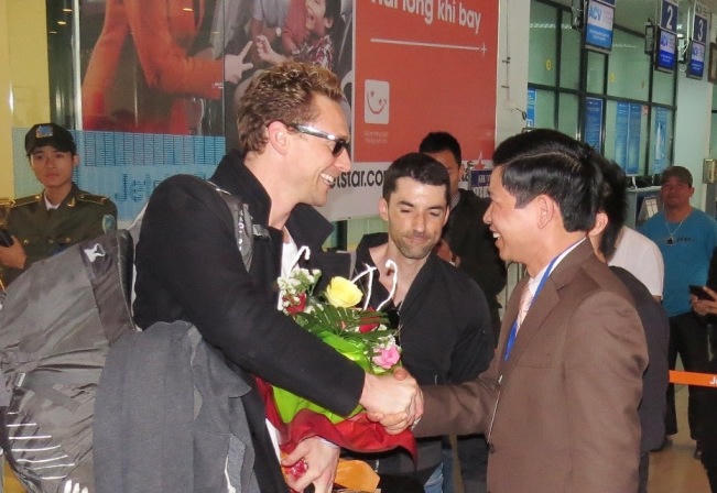 Nam diễn viên người Anh Tom Hiddleston của , Kong: Skull Island tại Sân bay Đồng Hới (Quảng Bình). Ảnh: T.N.Phong |