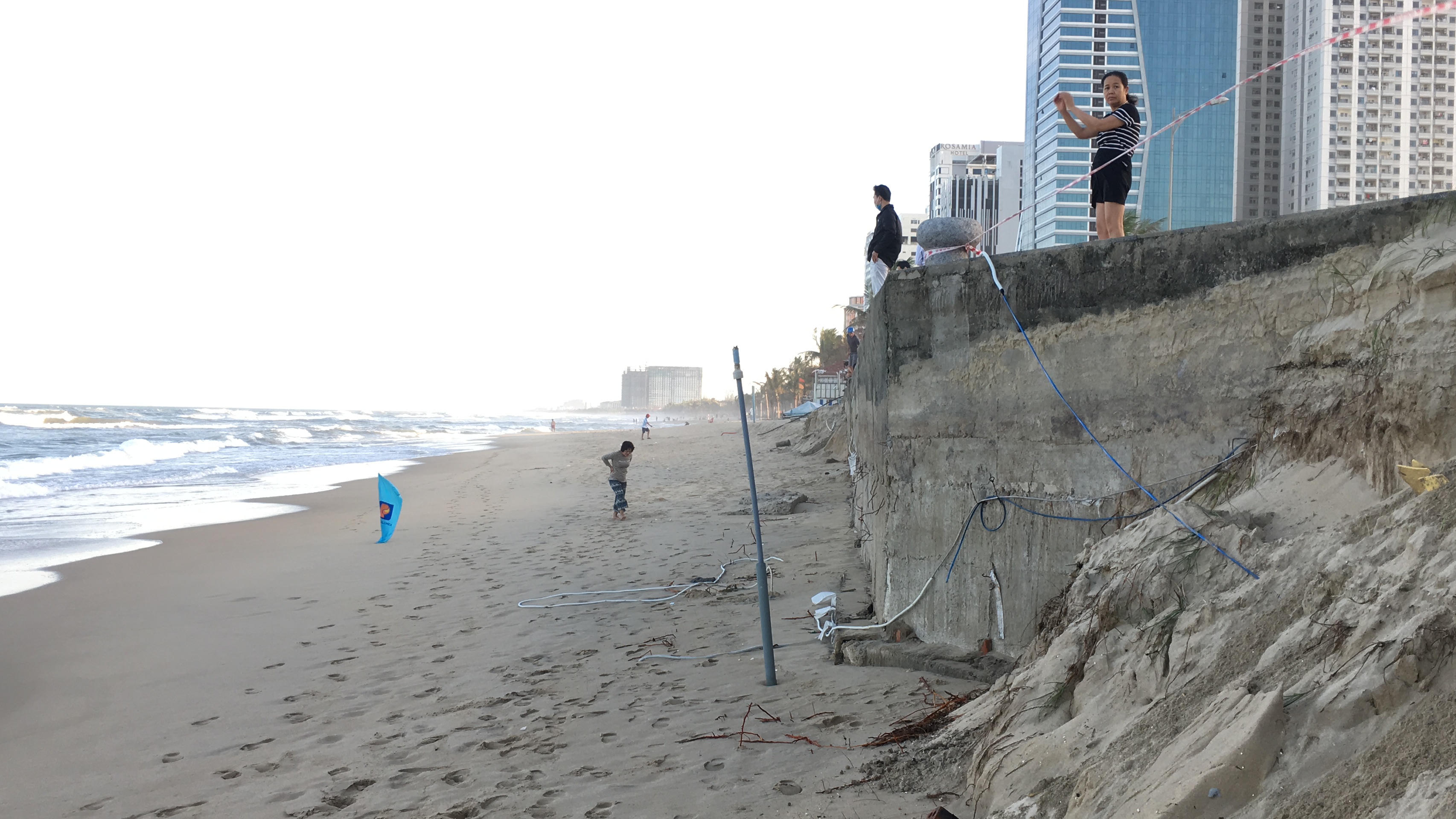 Nhiều tháng qua, bãi biển dọc tuyến đường Phạm Văn Đồng đến Phan Tứ bị sạt lở.