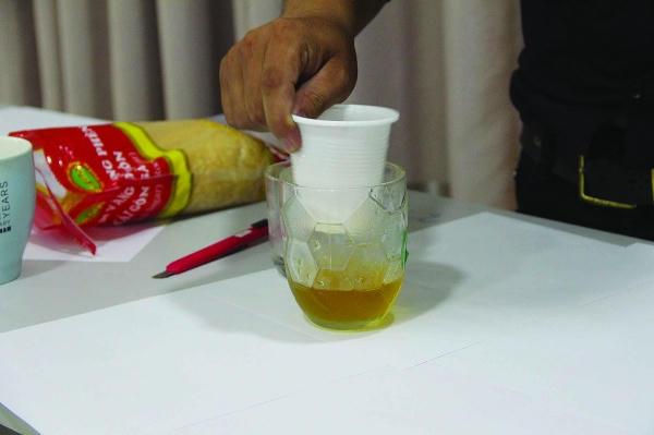 Từ phản ánh của bạn đọc, chiều ngày 6/4, chúng tôi đã mua 2 gói đường phèn vàng Sài Gòn loại 1kg của CTCP Đường Sài Gòn (cùng mã vạch 8936088170019 sản xuất ngày 30/10/2015 có hạn sử dụng 18 tháng) để kiểm chứng. Khi cho đường phèn vàng vào nước lọc và lắc đều chừng 3 phút, thì một lượng đường bên ngoài tan chảy cuốn theo lớp bọc màu vàng khiến nước lọc đổi sang màu vàng đậm như màu nước chè đặc. Khi vớt các hạt đường ra khỏi nước thì đường phèn vàng lại... “hô biến” thành đường phèn trắng. Bao quanh hạt đường vẫn còn lốm đốm màu vàng do chưa tan hết. Điều đáng nói, khi chúng tôi kiểm tra mã vạch này thì không có bất kỳ thông tin nào trên hệ thống mạng lưu trữ.