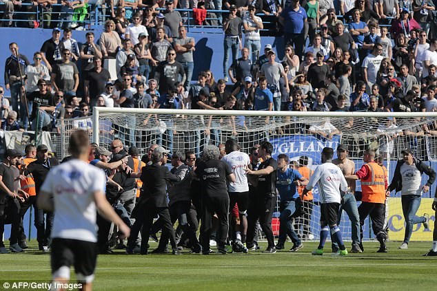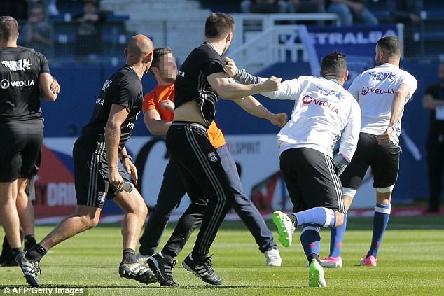 Hàng trăm cổ động viên Bastia đã tràn xuống sân đuổi đánh các cầu thủ Lyon khi các cầu thủ đội khách đang khởi động để chuẩn bị cho trận đấu thuộc vòng 33 Ligue 1.