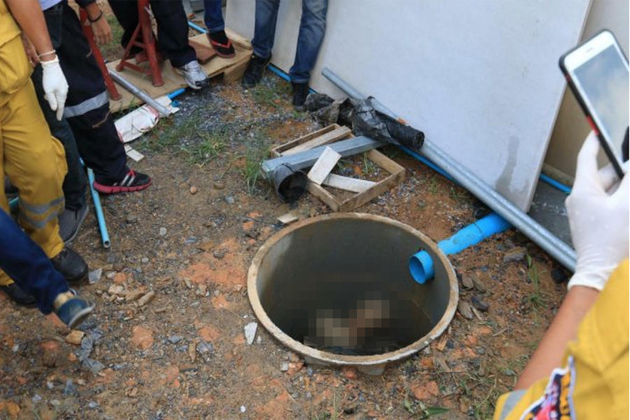 Các nhà chức trách đã phát hiện ra một cơ thể người biến dạng, bị nhồi trong một bể tự hoại nằm ở sân sau của nhà hàng.