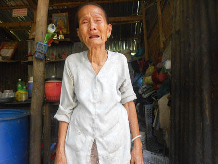 “Chồng tôi đã mất cách đây 15 năm. Tôi nhiều con lắm, không nhớ rõ là mấy đứa, chỉ nhớ Phong là con út. Nhà không có ruộng đất, con cái lại lập gia đình ở xa, chẳng mấy khi về nên tôi sống với Phong. Con tôi khùng, vợ nó cũng khùng. Hai đứa cưới nhau cách đây 12 năm và có 3 đứa con trai, đứa lớn 11 tuổi, đứa nhỏ 7 tuổi.