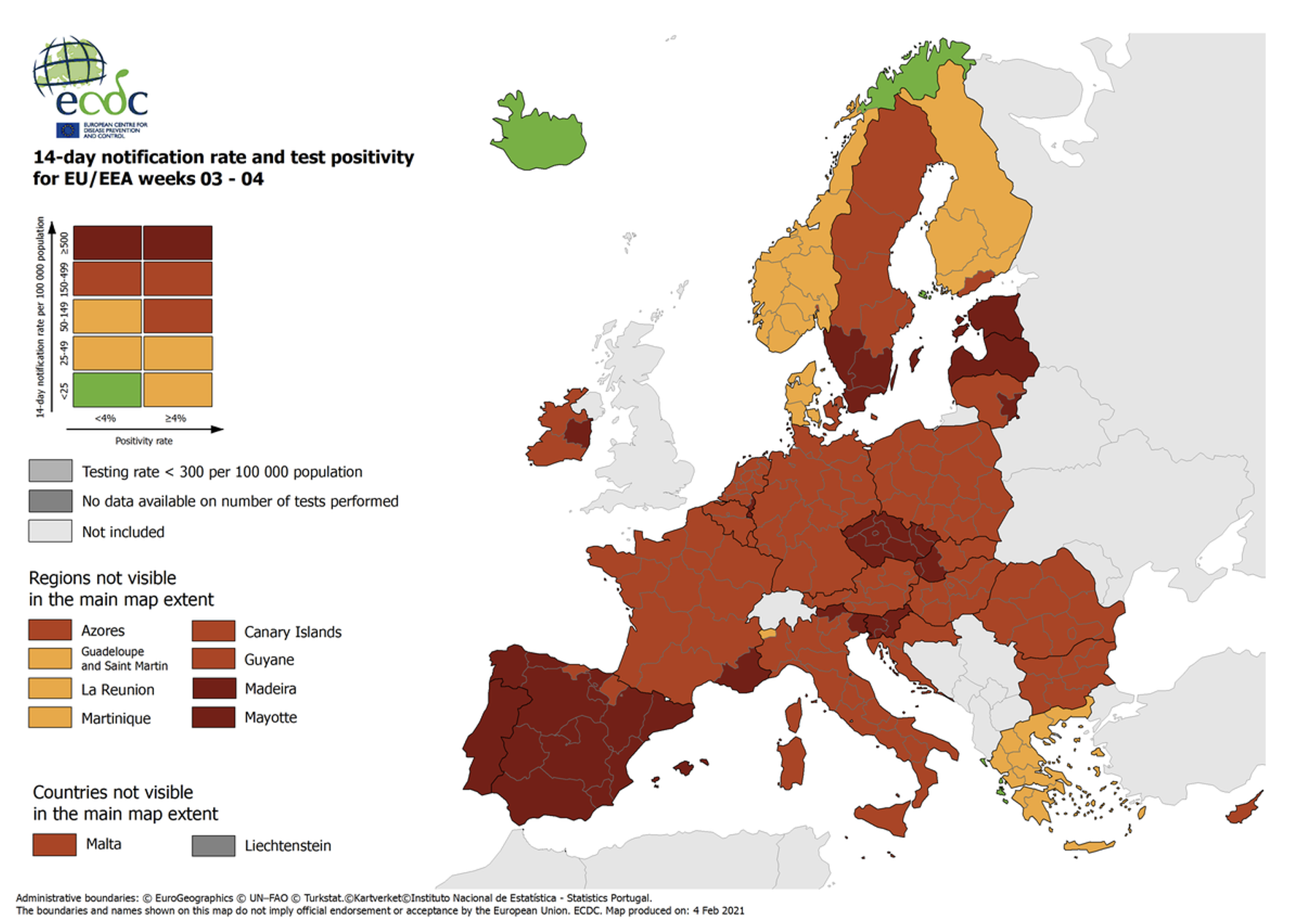 Một bản đồ phân vùng của Trung tâm Phòng ngừa và Kiểm soát Dịch bệnh châu Âu. |