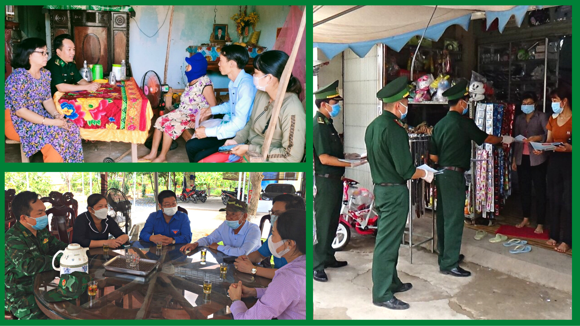 Tuyên truyền nhỏ lẻ vào từng hộ dân luôn được Trung tá Nam và các cán bộ, chiến sĩ ĐBP Cửa khẩu Quốc tế Bình Hiệp tập trung triển khai. |