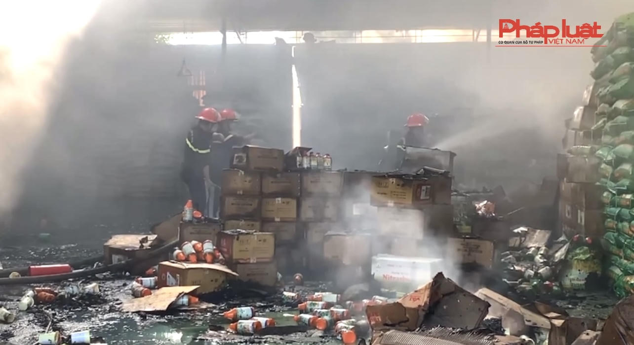 Thời điểm xảy ra cháy trong nhà kho chứa khoảng 70 tấn phân bón, 02 tấn thuốc bảo vệ thực vật các loại cùng nhiều bao bì, thùng carton, lực lượng cơ sở đã tổ chức chữa cháy nhưng không thành công.