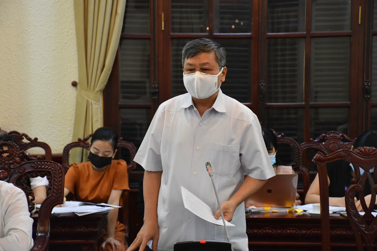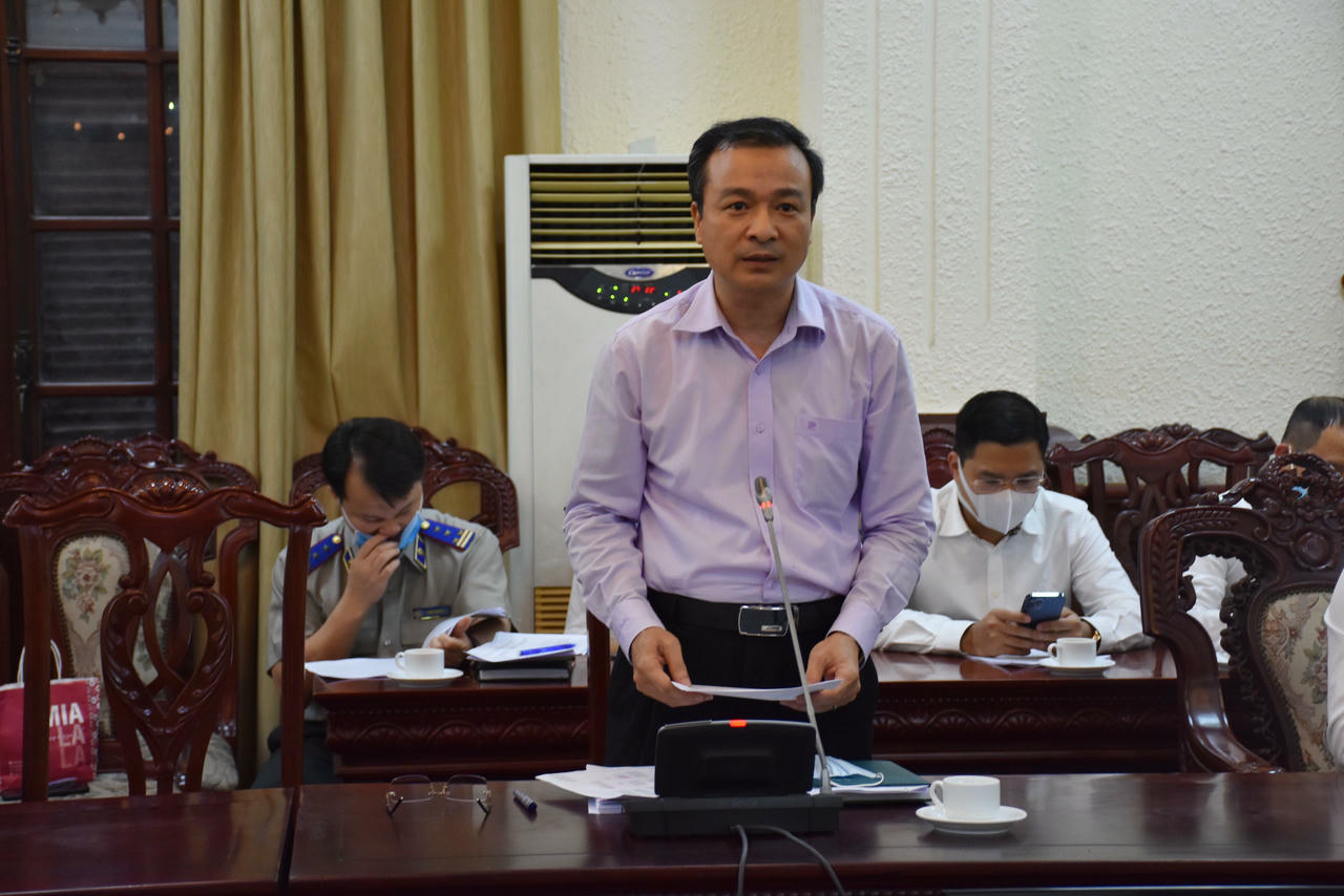 Vụ trưởng Vụ Các vấn đề chung về xây dựng pháp luật Nguyễn Hồng Tuyến báo cáo tại cuộc họp. |