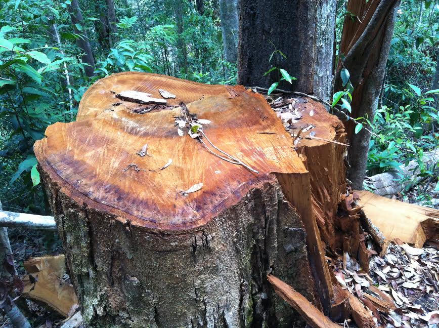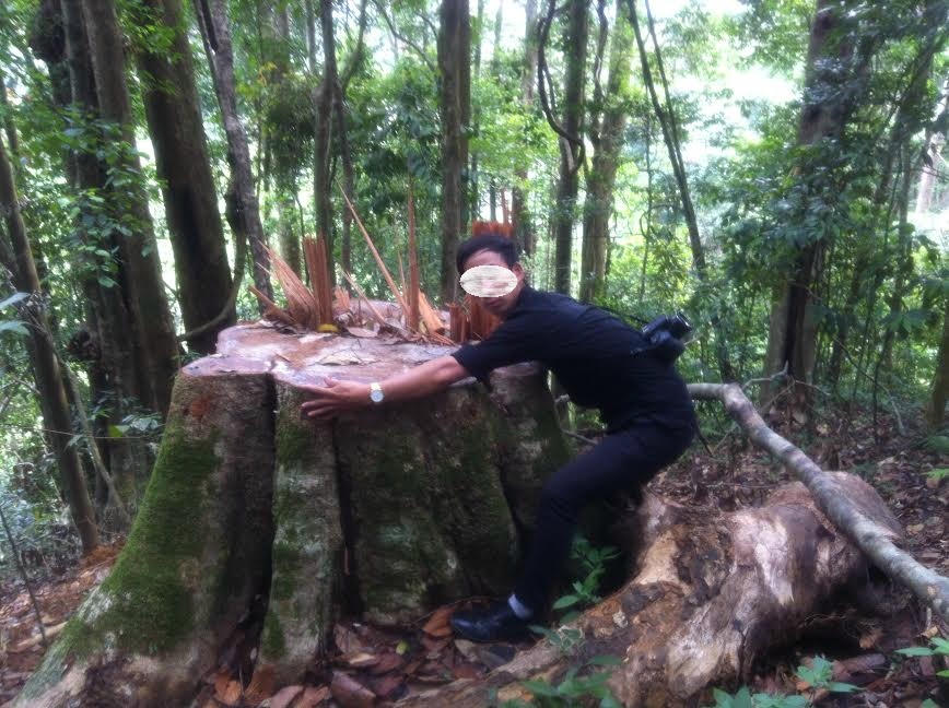 Chỉ mới đi được một quãng ngắn, chúng tôi phát hiện thêm 5 cây dầu đều đã bị đốn hạ. Chỉ nhìn bằng mắt thường cũng có thể thấy vết cắt rất ngọt và vuông. Theo nhận định của đồng chí Mẫn - cán bộ kiểm lâm địa bàn, các dấu vết để lại hiện trường cho thấy các đối tượng đã xẻ gỗ thành hộp để vận chuyển đi.