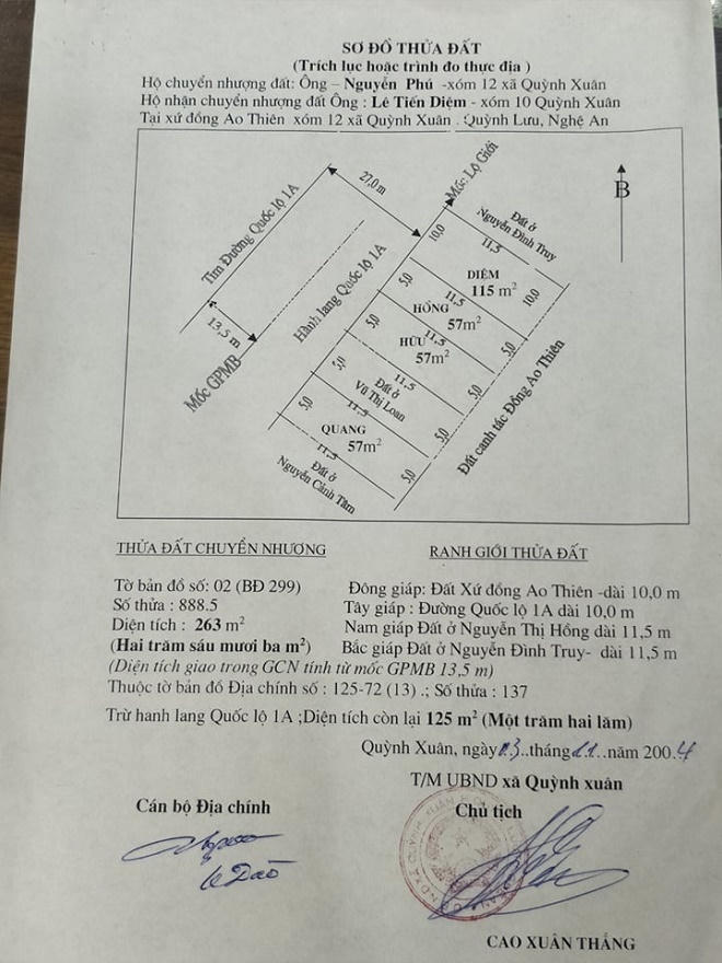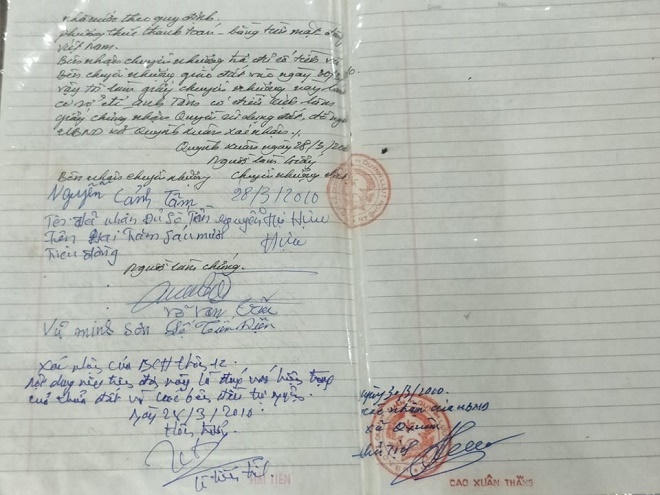 Về phía đại diện chính quyền ký tên, đóng dấu trên giấy chuyển nhượng, Chủ tịch UBND xã lúc đó là ông Cao Xuân Thắng, nay là Bí thư phường Quỳnh Xuân, cho biết: