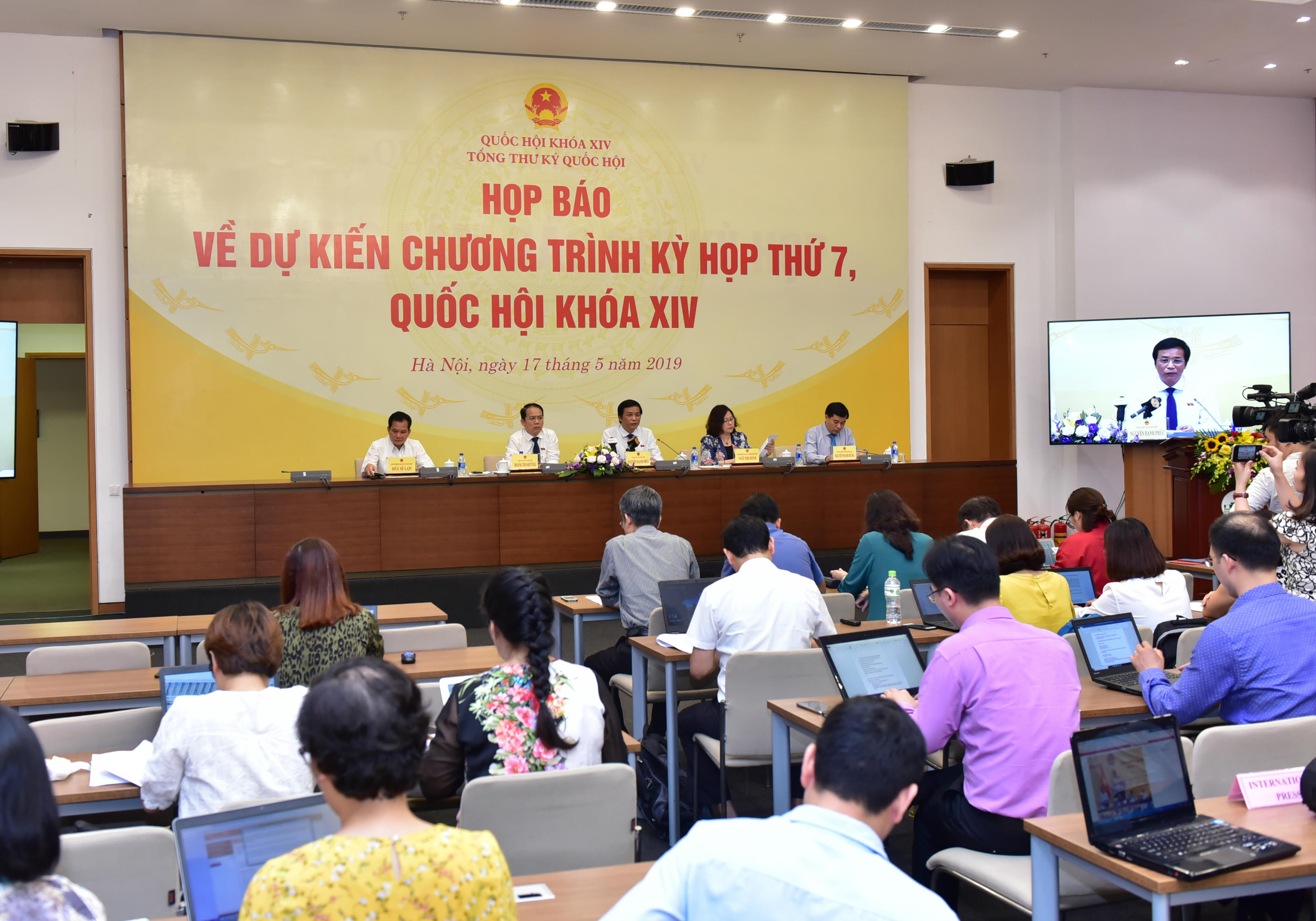 Chiều (17/5), Văn phòng Quốc hội đã tổ chức Họp báo về dự kiến chương trình Kỳ họp thứ 7, Quốc hội khóa XIV. Tổng Thư ký Quốc hội, Chủ nhiệm Văn phòng Quốc hội Nguyễn Hạnh Phúc chủ trì.