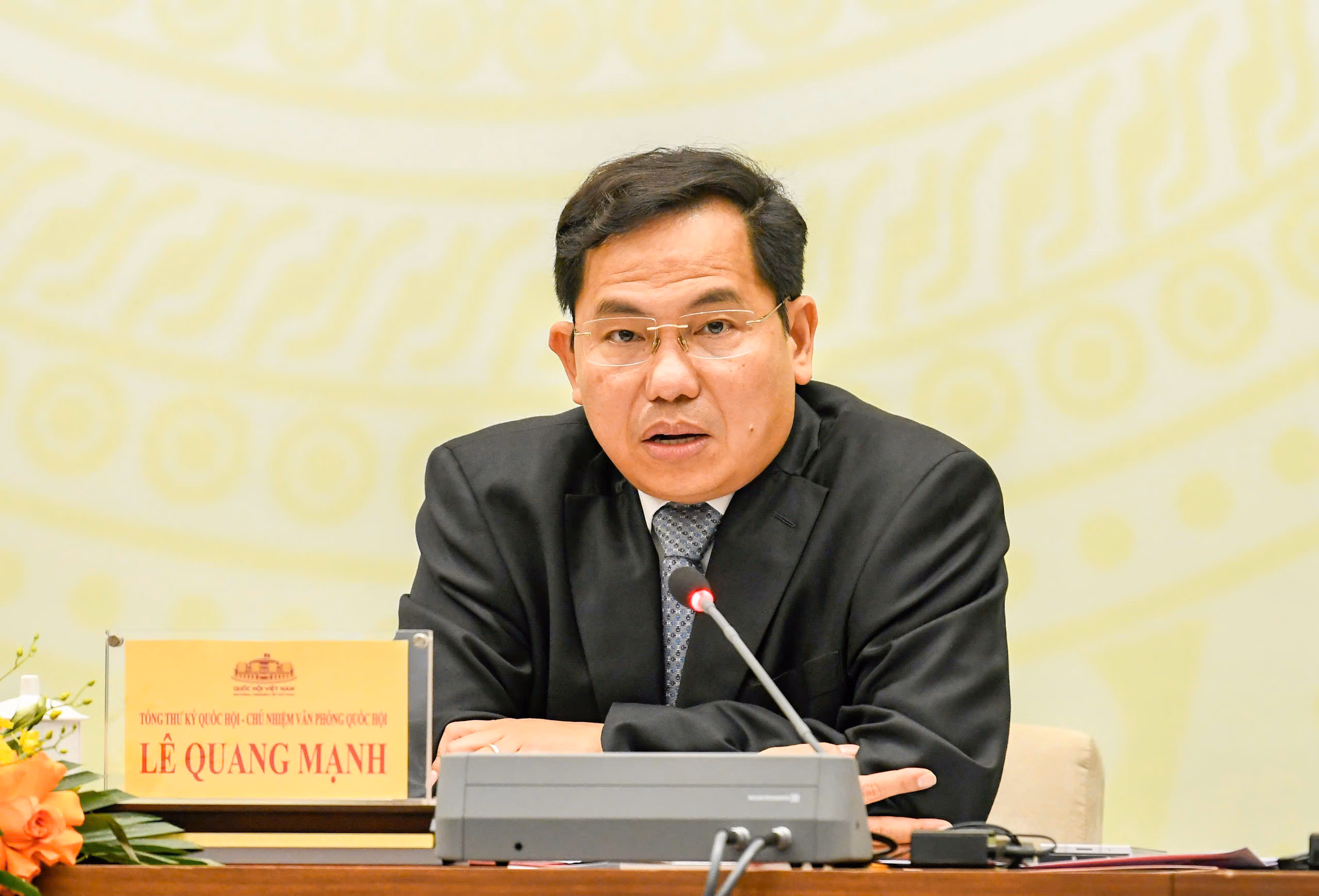 Chiều 3/4, Tổng Thư ký Quốc hội, Chủ nhiệm Văn phòng Quốc hội Lê Quang Mạnh chủ trì Họp báo về dự kiến chương trình Kỳ họp thứ Nhất, Quốc hội khóa XVI.