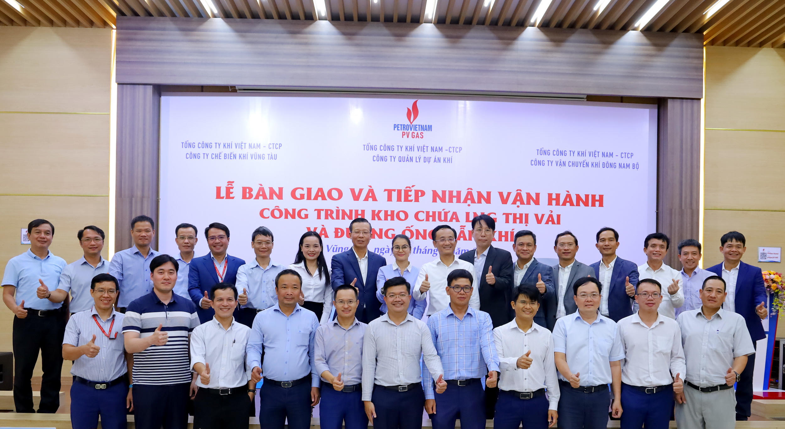 Tại buổi lễ, Công ty Quản lý Dự án khí đã hoàn thành trách nhiệm và ký kết bàn giao hiện trạng công trình Kho cảng LNG Thị Vải và Trạm giảm áp Thị Vải cho Công ty Chế biến Khí Vũng Tàu (KVT) là đơn vị tiếp nhận, phụ trách vận hành. Đồng thời, Công ty Quản lý Dự án khí cũng ký kết bàn giao hiện trạng công trình Đường ống dẫn khí LNG tái hóa Thị Vải – Phú Mỹ cho Công ty Vận chuyển khí Đông Nam Bộ (KĐN).