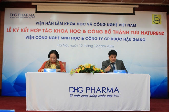 (PLO) -Viện Hàn Lâm Khoa học và Công nghệ Việt Nam vừa phối hợp với Viện Công nghệ sinh học (CNSH) và Công ty Cổ phần Dược Hậu Giang (DHG) tổ chức "Lễ kí kết hợp tác khoa học & Công bố thành tựu Naturenz" tại Hà Nội.