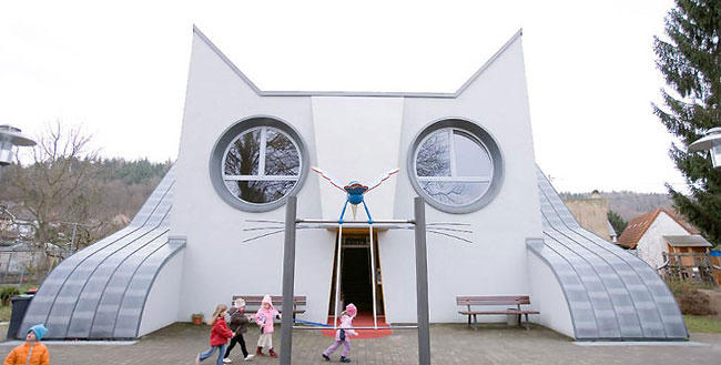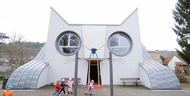 Trường mẫu giáo Dee Katze ở Pháp với các lớp học có hình dạng như những chú mèo. |