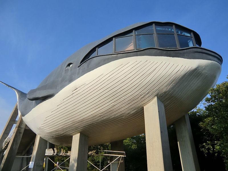 Công trình có kiến trúc có hình dáng cá voi trong một công viên ở Simonoseki, Nhật Bản. |