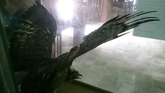 “Cụ” được đặt trong một chiếc lồng kính cao khoảng 1,2m, dài 1,5m, rộng khoảng 80cm. Từ năm 2003 đến nay là 12 năm nhưng xác “cụ” chim ó vẫn được giữ rất tốt, không bị bọ hay mọt ăn lông.
