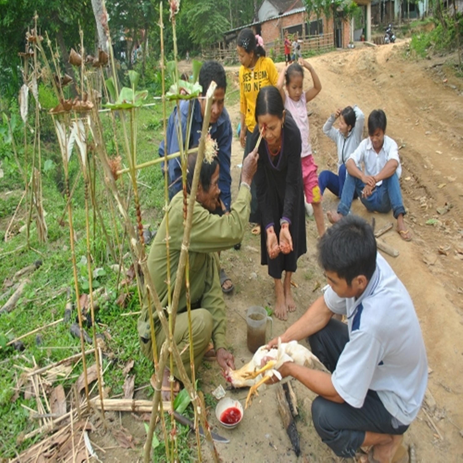 Già làng Đinh Văn Dàn (ngụ thôn Măng Lùn) cho biết: “Để làm lễ trồng cây cúng” bắt buộc phải có gà, nhà nào giàu có thì làm con heo. Thầy cúng sẽ xem chân gà và cho biết giờ nào thì trồng cây “cúng” tốt nhất. Nếu cây to, bắt buộc phải có heo để làm lễ. Cây “cúng” được trồng đến khi nào gãy mục thì mới dọn đi.