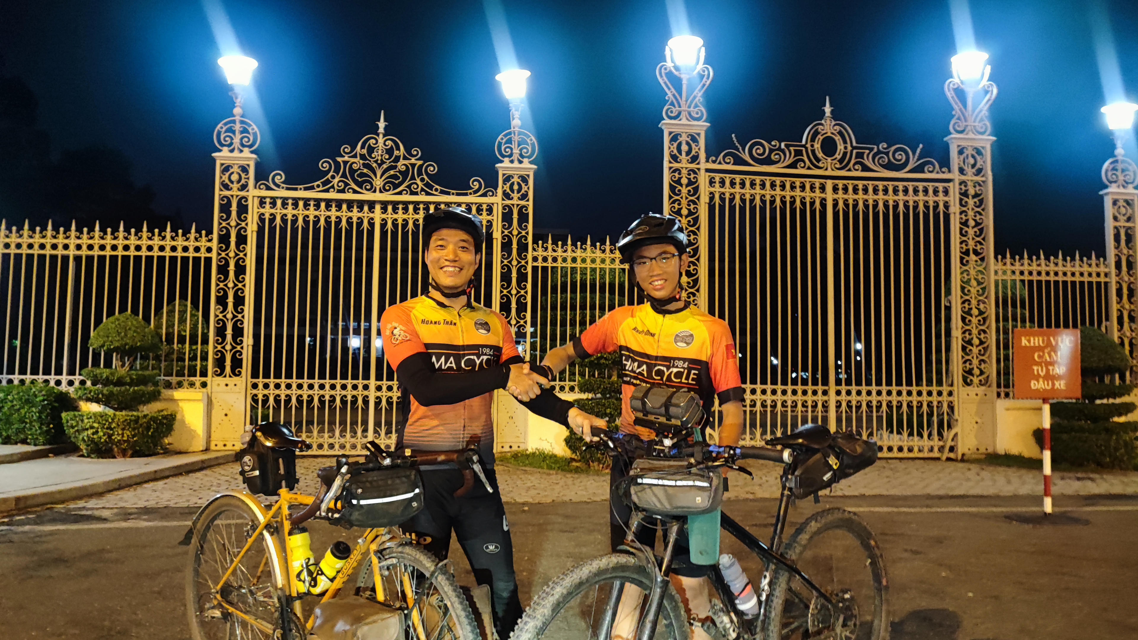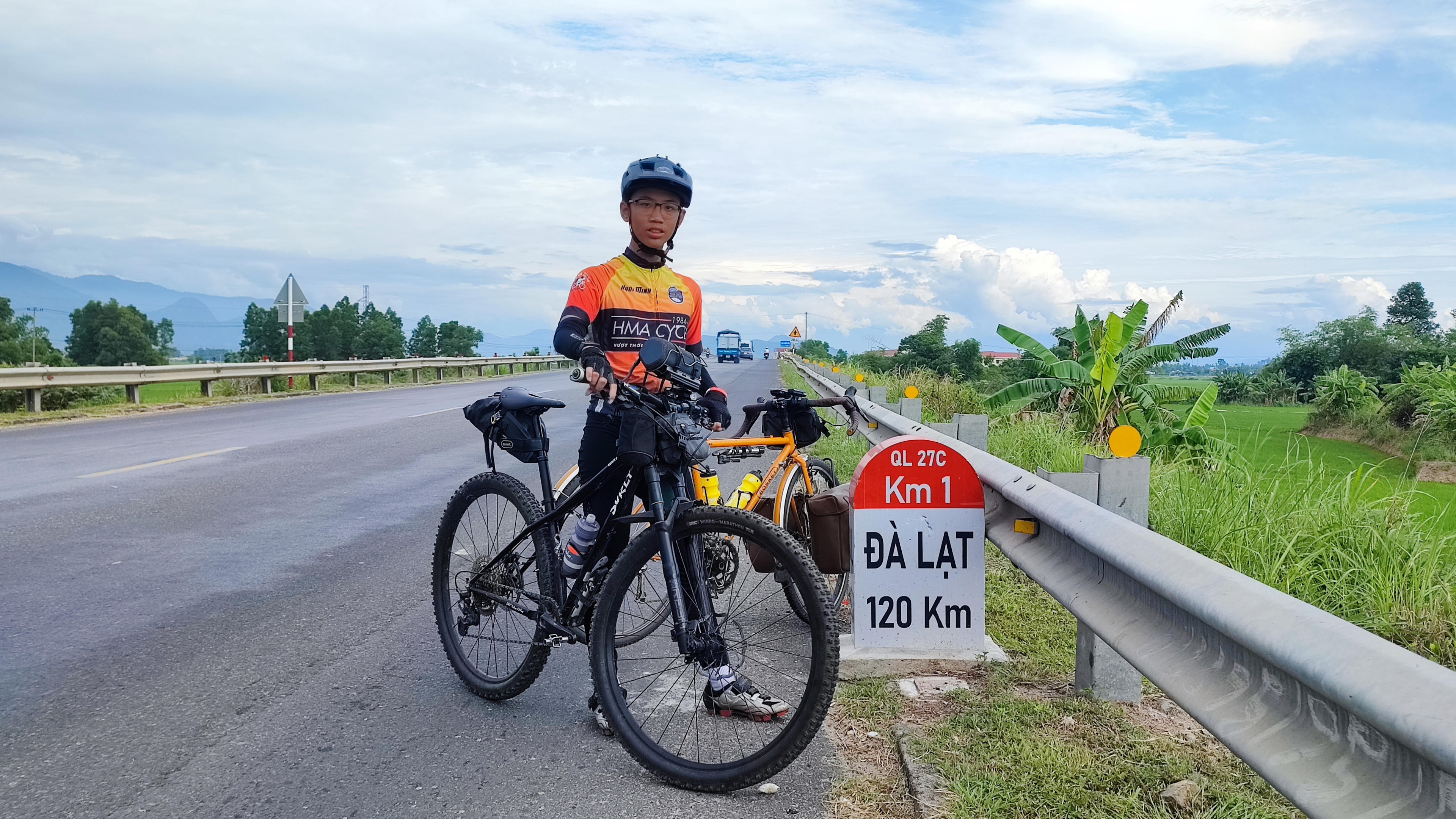 “Cô chú khi đạp xe nhớ đừng đi sát mép đường quá, khu vực đó rất nhiều cát sỏi bẩn và tập trung nhiều vật gây hỏng lốp và thủng săm. Trong hành trình, bố con cháu cũng đã bị nát lốp theo nghĩa đen”, Khởi Minh nhắn gửi qua Báo Pháp luật Việt Nam.