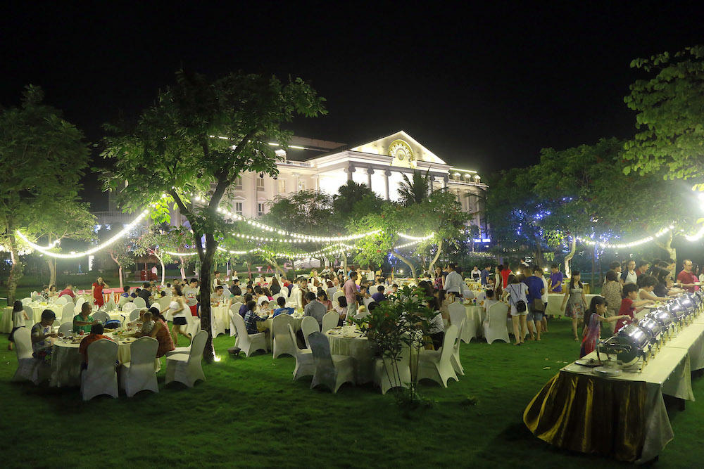 Sau một ngày dài vui chơi, bạn sẽ ăn tối trong không gian xanh đẹp như mơ với cỏ cây hoa lá bao bọc. Một bữa tối lãng mạn khó quên.