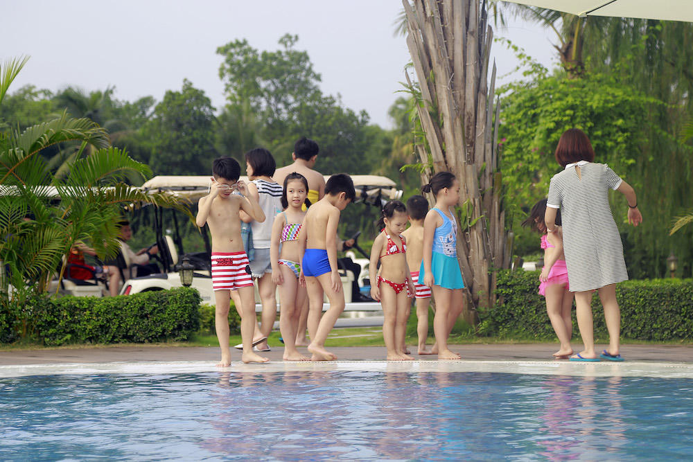 Nhưng nếu trời nắng đẹp, tất nhiên bể bơi ngoài trời là lựa chọn hàng đầu để bọn trẻ có thể vùng vẫy, nô đùa.