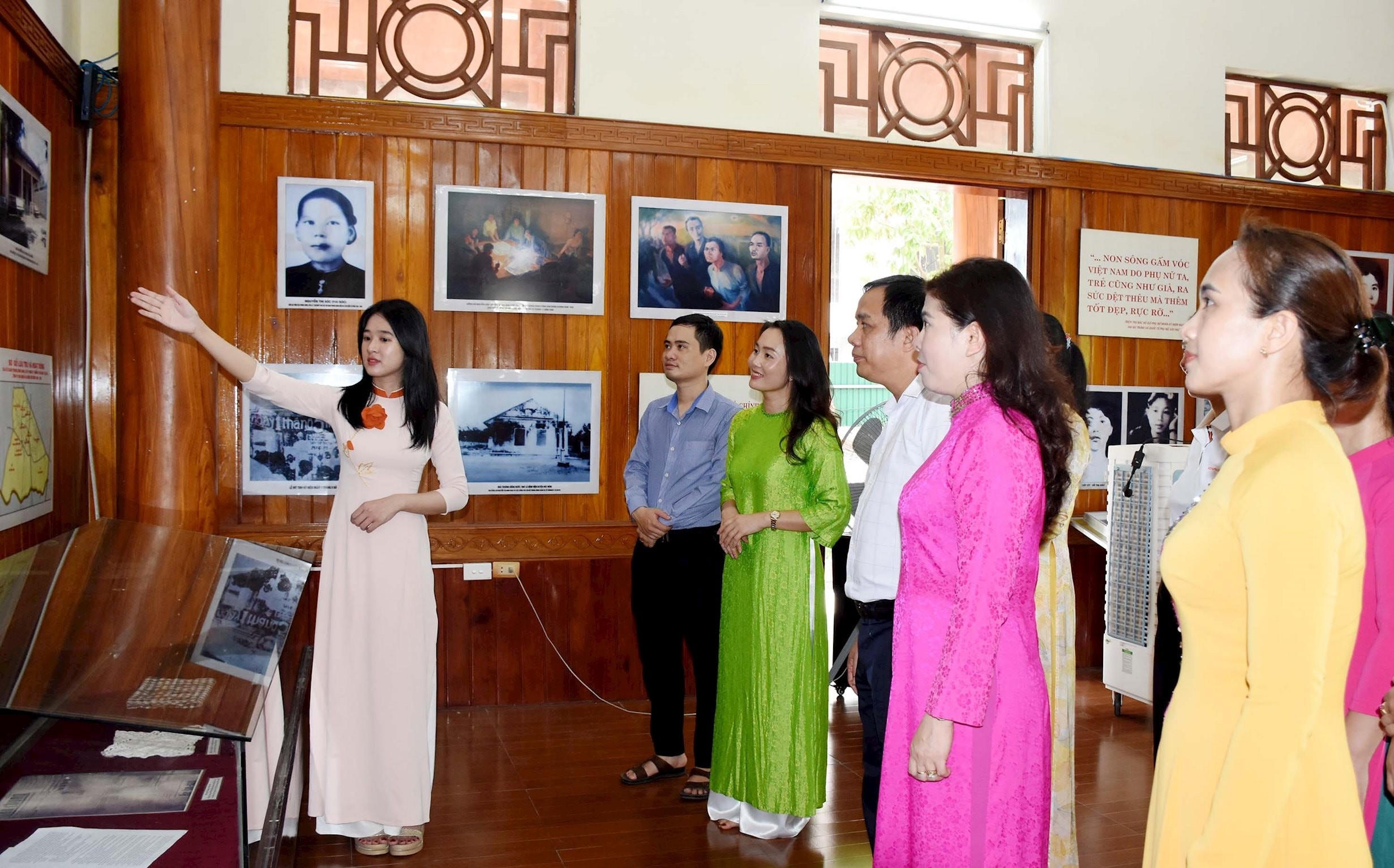 Các đại biểu ôn lại những cống hiến to lớn của bà Nguyễn Thị Minh Khai. |