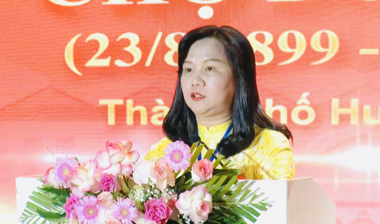 Bà Hoàng Thị Như Thanh, Trưởng BQL chợ Đông Ba phát biểu tại lễ kỷ niệm. |
